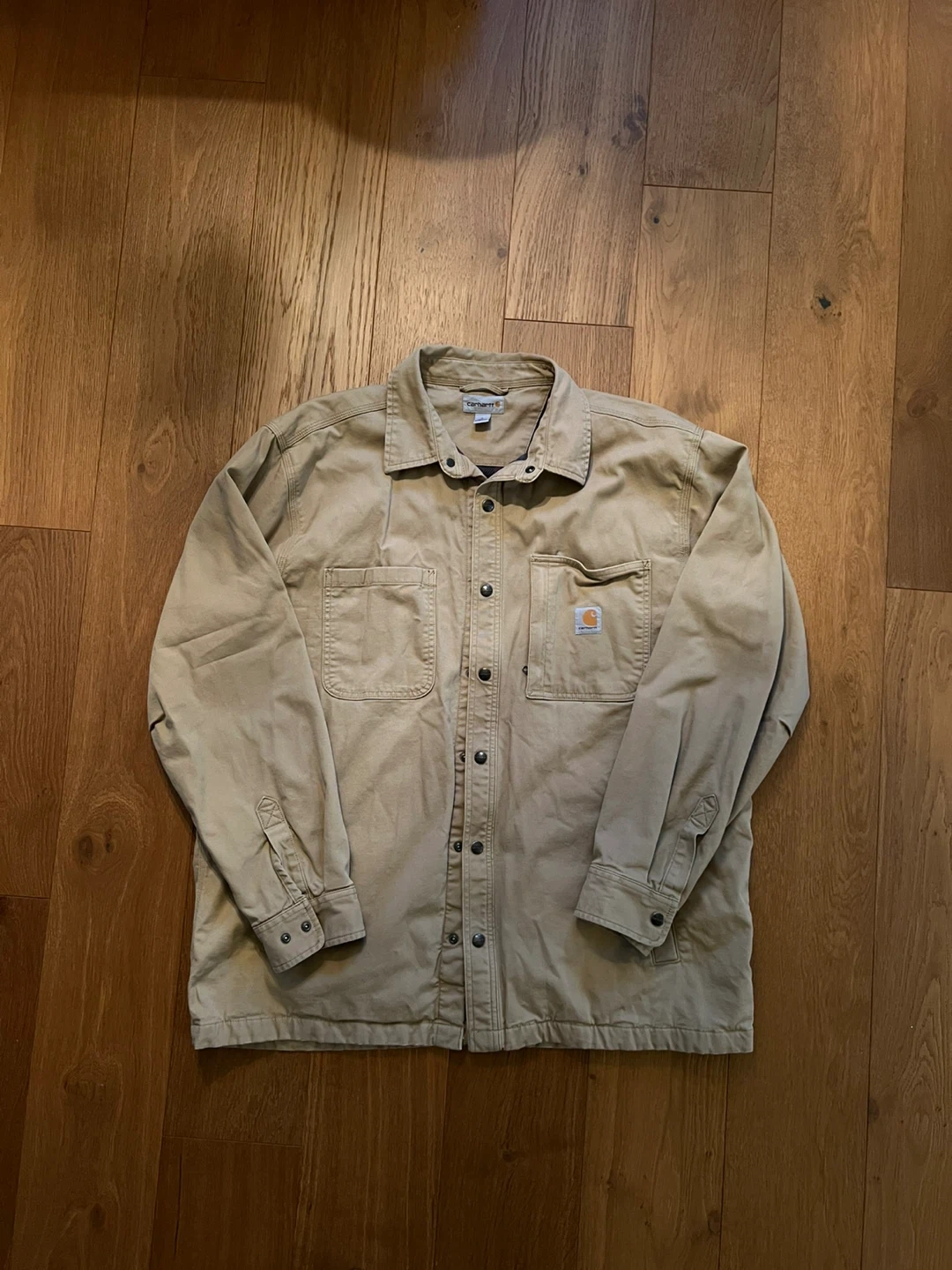 Selling a Carhartt workwear button-up jacket. It's in great condition and ready for a new owner. Perfect for layering or wearing on its own!