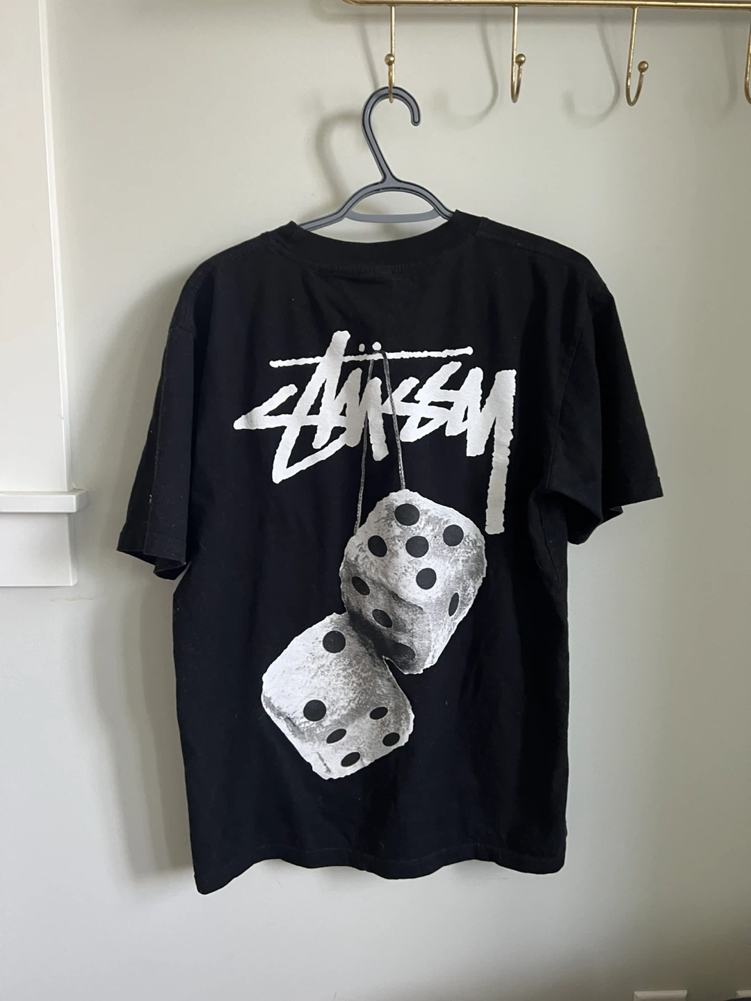 Selling a cool Stussy t-shirt in black! It features the iconic Stussy logo on the front and a fun dice graphic on the back. Great for adding a bit of street style to your wardrobe