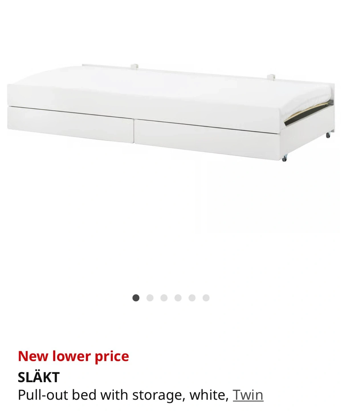 Selling an IKEA SLÄKT pull-out bed with storage in white.