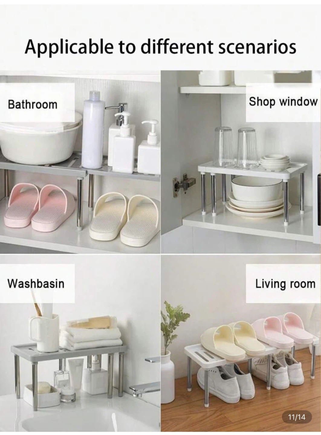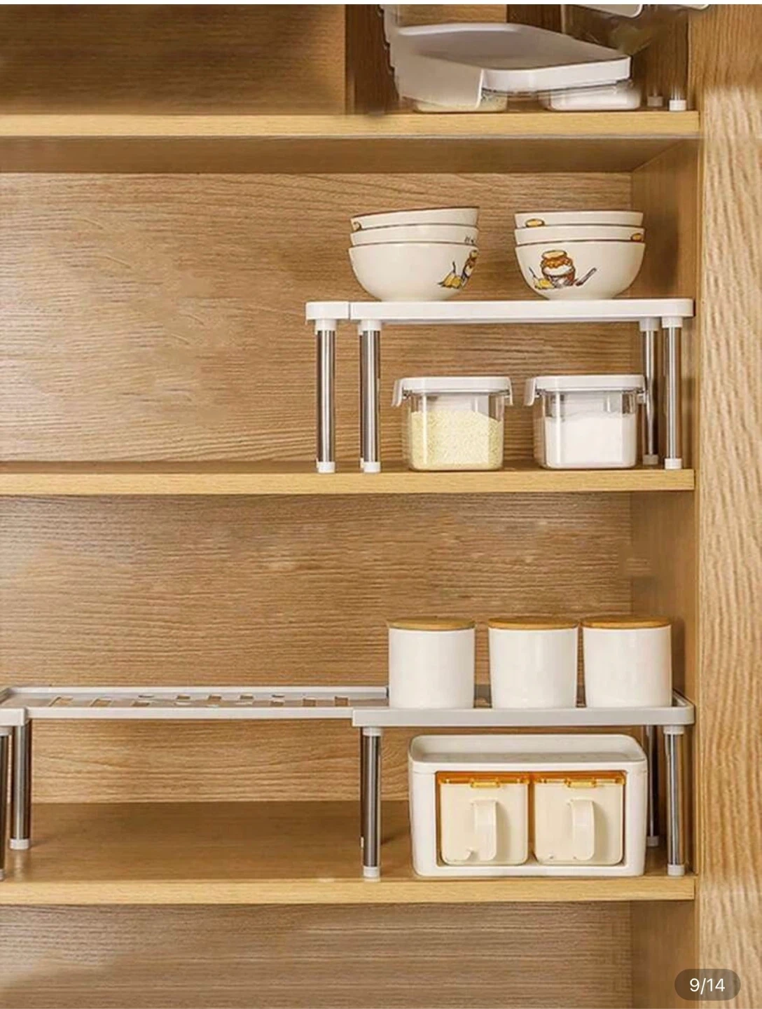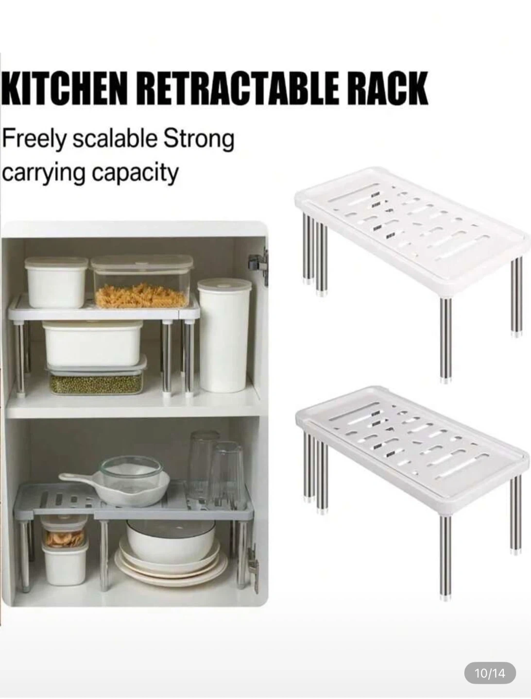 This kitchen retractable rack is perfect for organizing your space! It's freely scalable and has a strong carrying capacity. The design is scalable and detachable, helping you make the most of extra space and realize multiple storage options. It also features an anti-slip ring design for smooth placement and effective anti-skid properties