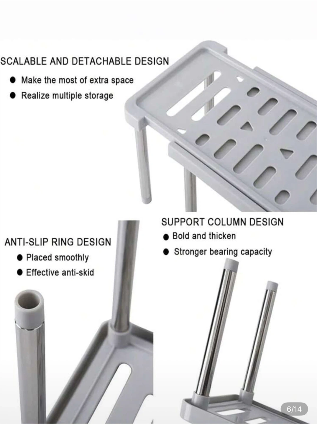 This kitchen retractable rack is perfect for organizing your space! It's freely scalable and has a strong carrying capacity. The design is scalable and detachable, helping you make the most of extra space and realize multiple storage options. It also features an anti-slip ring design for smooth placement and effective anti-skid properties