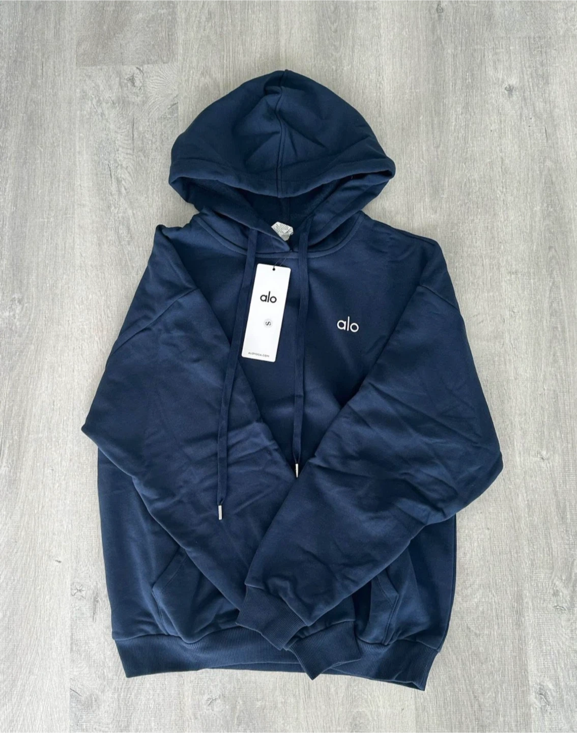 Selling a matching ALO Yoga set in navy! Includes a cozy hoodie and comfy sweatpants, both in excellent condition. Perfect for lounging or a light workout. The material is so soft and comfortable, you'll love wearing this set around the house or out and about!