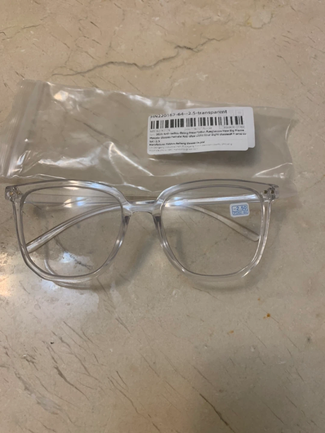 Selling a pair of clear frame glasses with a -2.50 prescription. They are in great condition and come in their original packaging