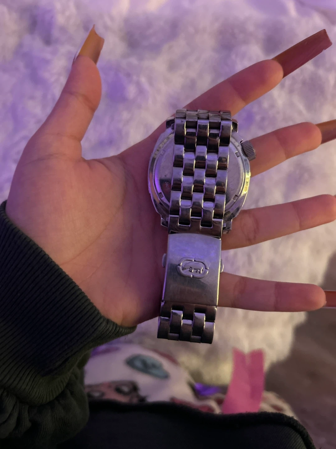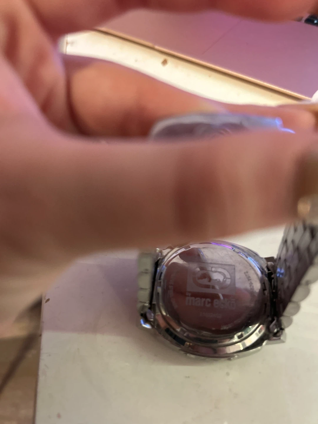 Selling a Marc Ecko watch in silver! It has a unique design on the face. It's in good condition and ready for a new owner