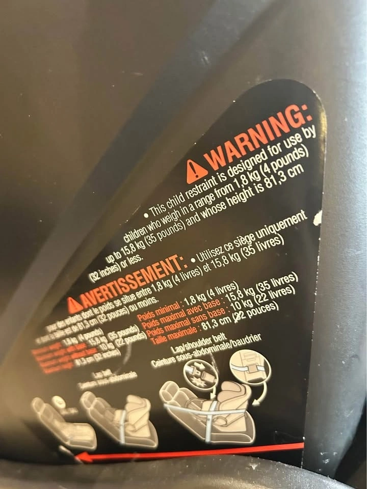 Gently used Peg Perego Primo Viaggio 4-35 car seat in the Licorice colour. From a clean, non-smoking home. Missing one strap pad otherwise is in good condition, base included.