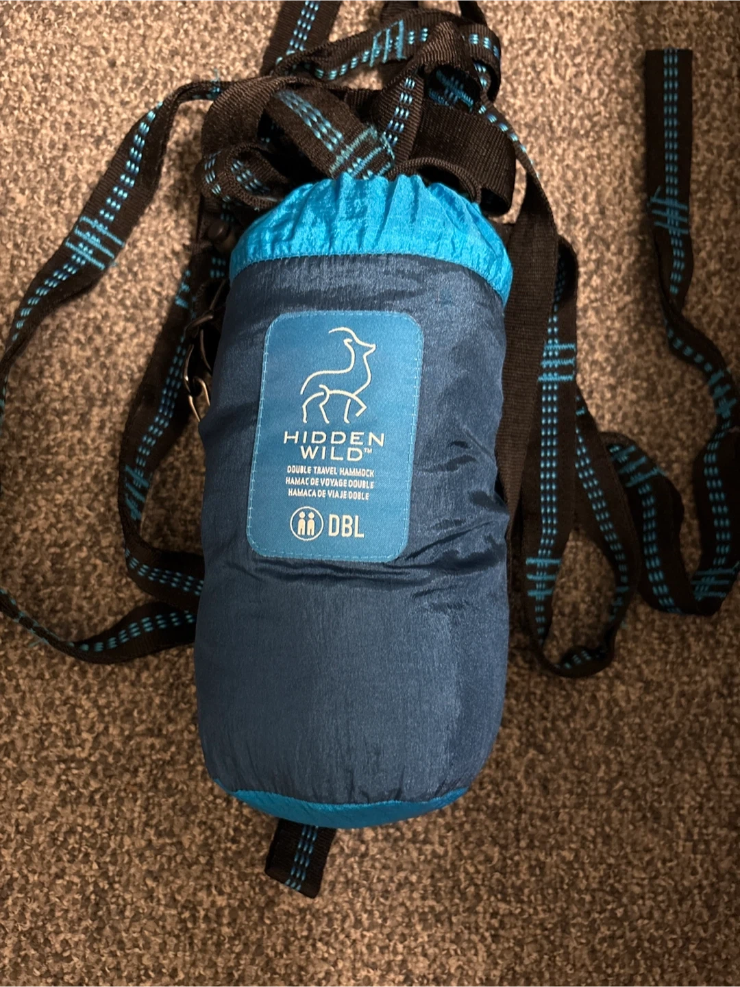 Selling a Hidden Wild double travel hammock! It's in great shape and ready for your next adventure. Perfect for relaxing outdoors or camping in the wilderness