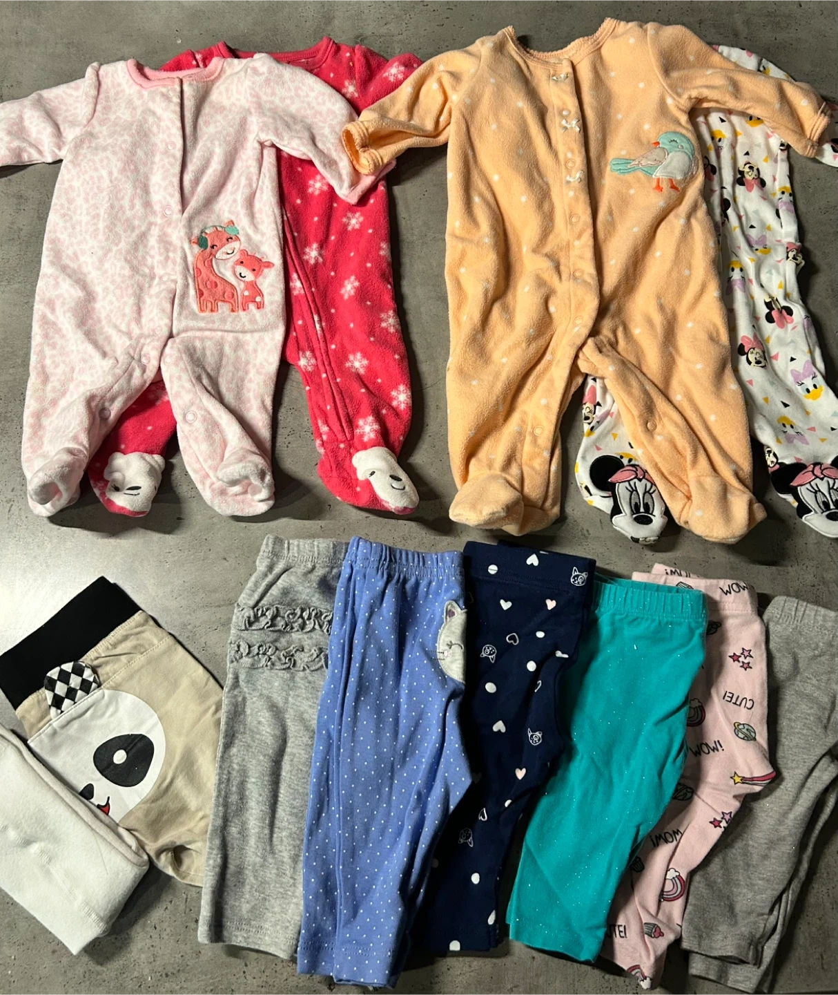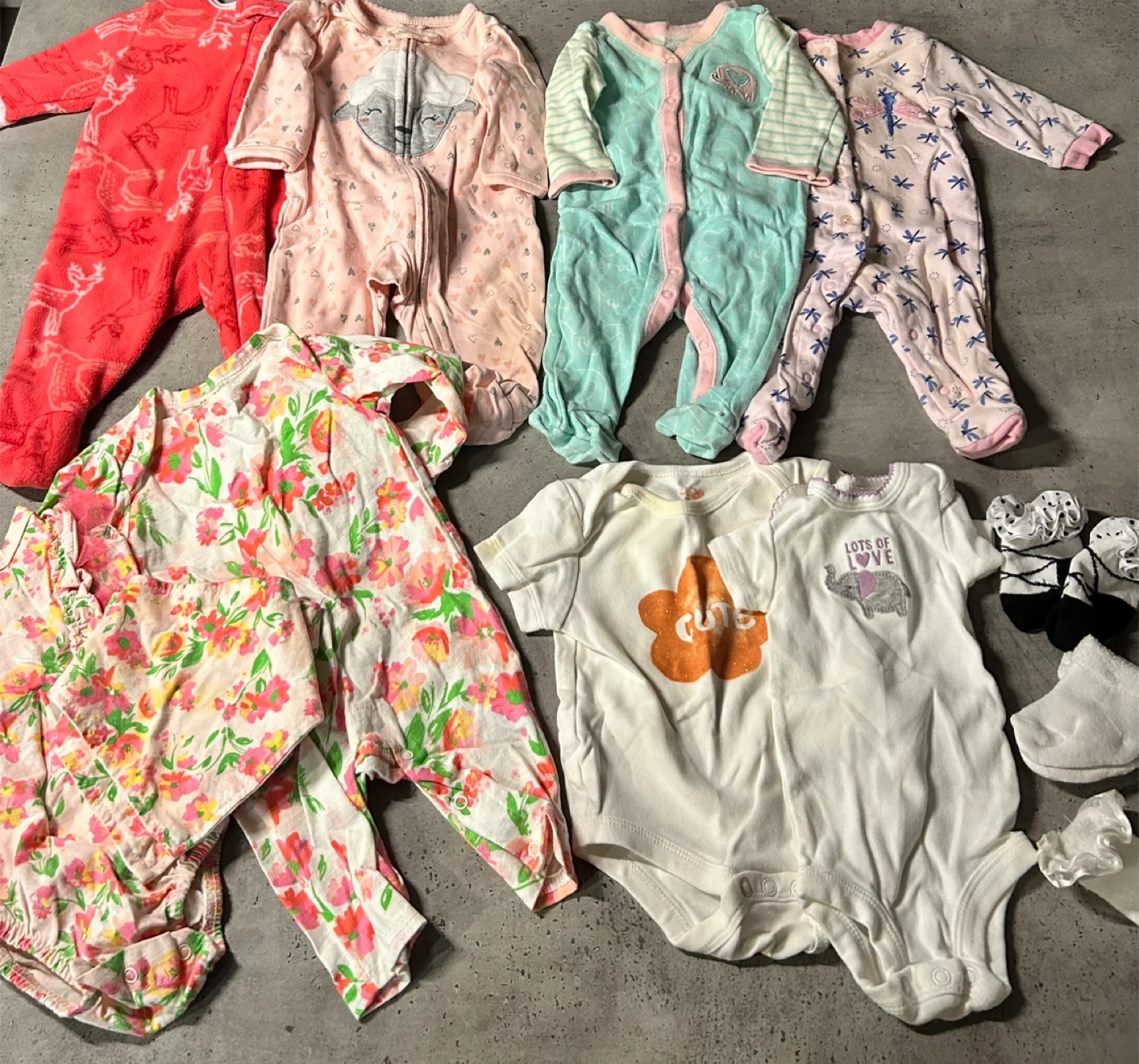 Selling a mixed bundle of baby clothing. Includes onesies, sleepers, pants, and more! Mostly 0-3 months, but a few newborn pieces.