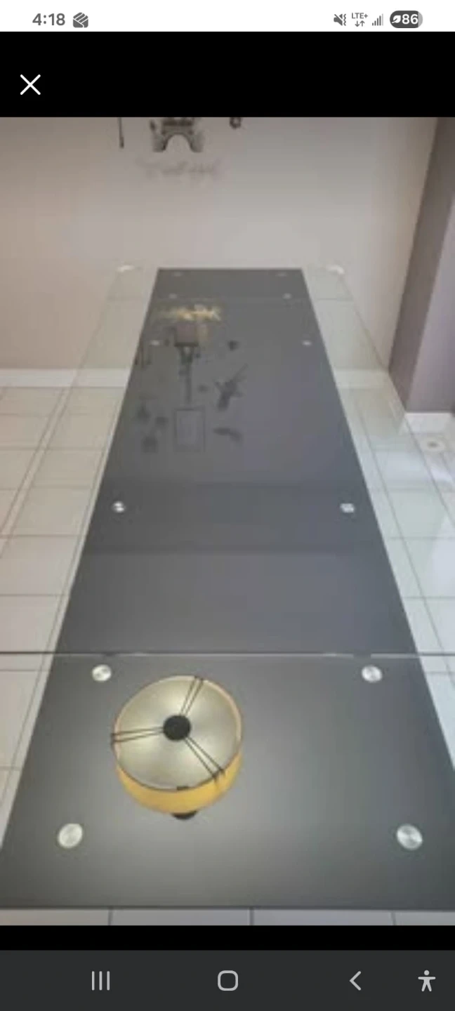 Selling a glass top dining table! It's in good condition and would be a lovely addition to any dining space. The glass top is sleek and modern, and the table itself is sturdy and well-built. It can be extended to 102.5 inch. Feel free to reach out if you're interested!