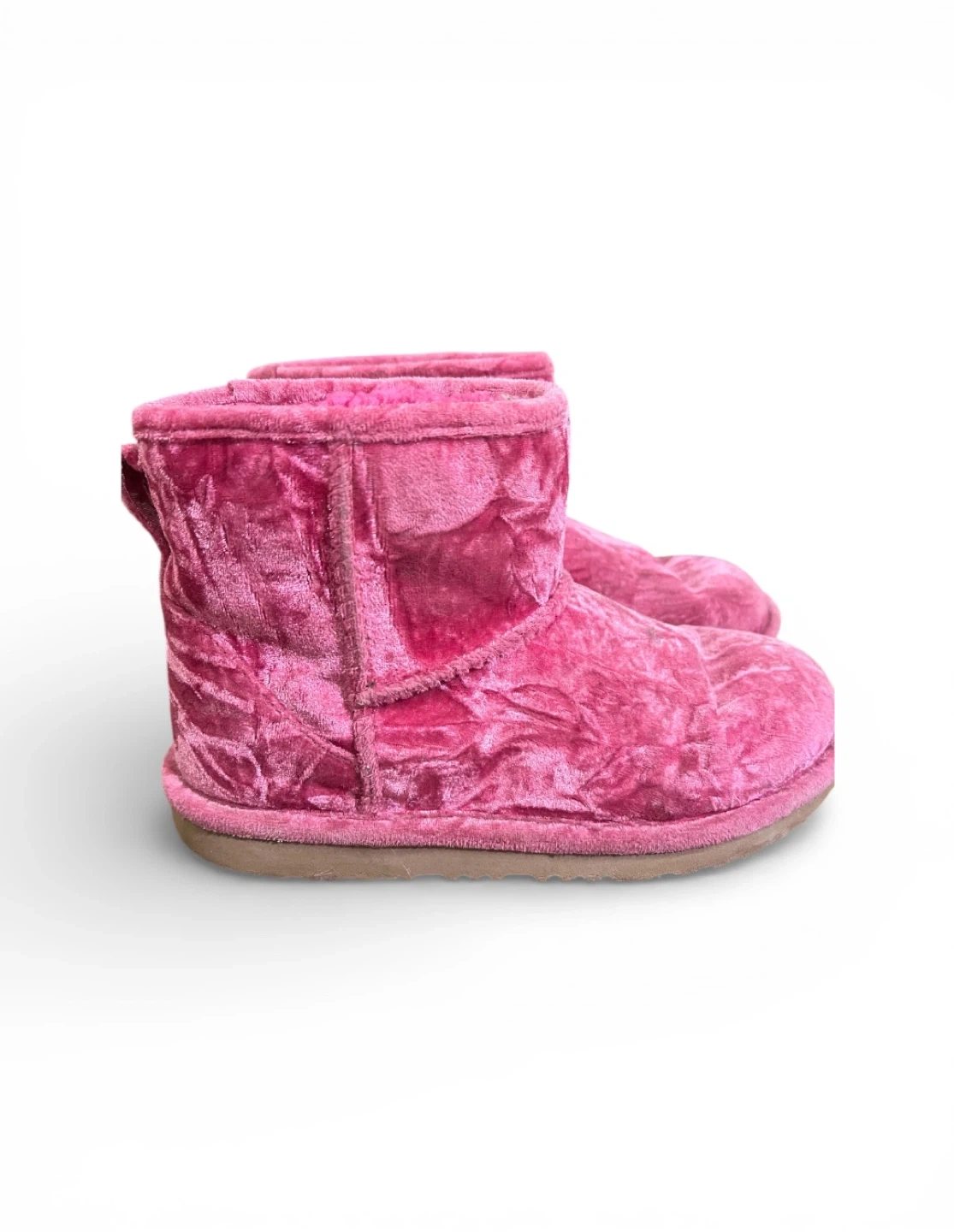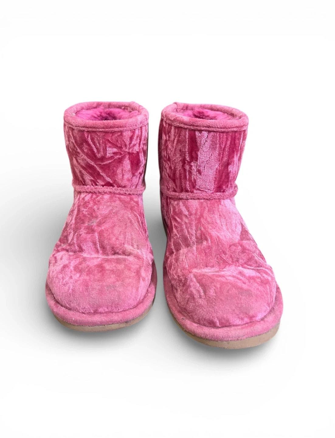 Selling a pair of UGG Kids Classic Short Velvet Boots in pink! They're in good condition and have a velvety texture. Perfect for keeping little feet warm and stylish!
