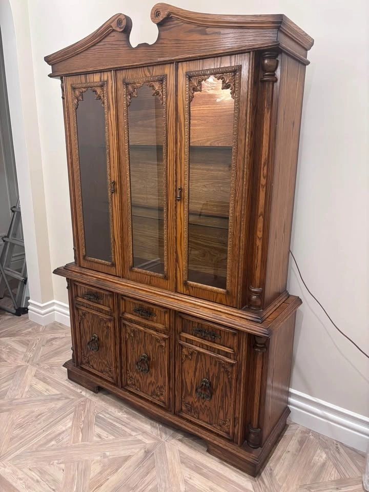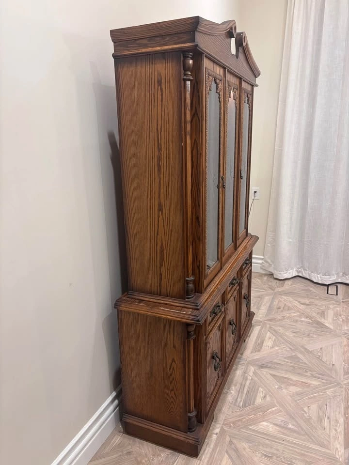 We’re selling our vintage solid wood buffet & hutch. It’s in good condition and excellent for those who are looking for a solidly built quality unit. We recently moved and it can’t fit in our new place which is why we’re selling it. You will not find this quality nowadays without paying $$$.