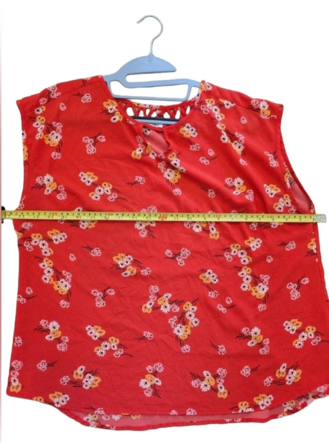 Brighten up your wardrobe with this cheerful red floral blouse from Maurices. Featuring a relaxed fit and soft fabric, it’s perfect for casual outings, weekend brunches, or layering under a jacket for a pop of color.