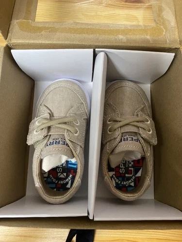 The Sperry Top-Sider Baby Trysail Crib Shoes in khaki Field are stylish and comfortable sneakers designed for baby boys in size 3M. Made with a textile upper material and featuring a beige color, these crib shoes are perfect for casual occasions. With a medium shoe width and the classic Top Sider product line from Sperry, these shoes offer both support and style for your little one's feet.