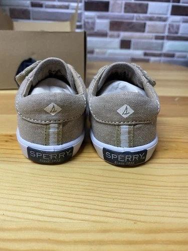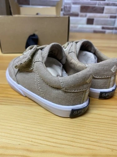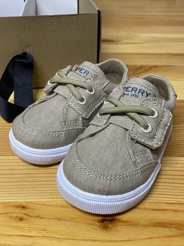 The Sperry Top-Sider Baby Trysail Crib Shoes in khaki Field are stylish and comfortable sneakers designed for baby boys in size 3M. Made with a textile upper material and featuring a beige color, these crib shoes are perfect for casual occasions. With a medium shoe width and the classic Top Sider product line from Sperry, these shoes offer both support and style for your little one's feet.