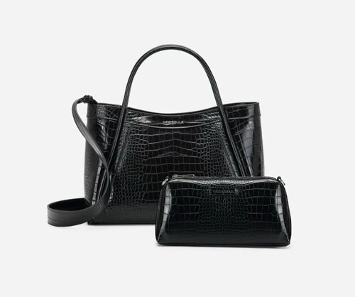 Kelly M Plus Size 2 PCS Set Crocodile Print Top Handle Bag (Blac