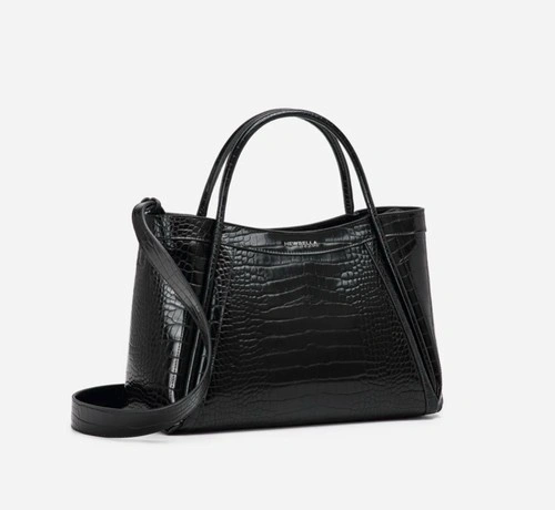 Kelly M Plus Size 2 PCS Set Crocodile Print Top Handle Bag (Blac