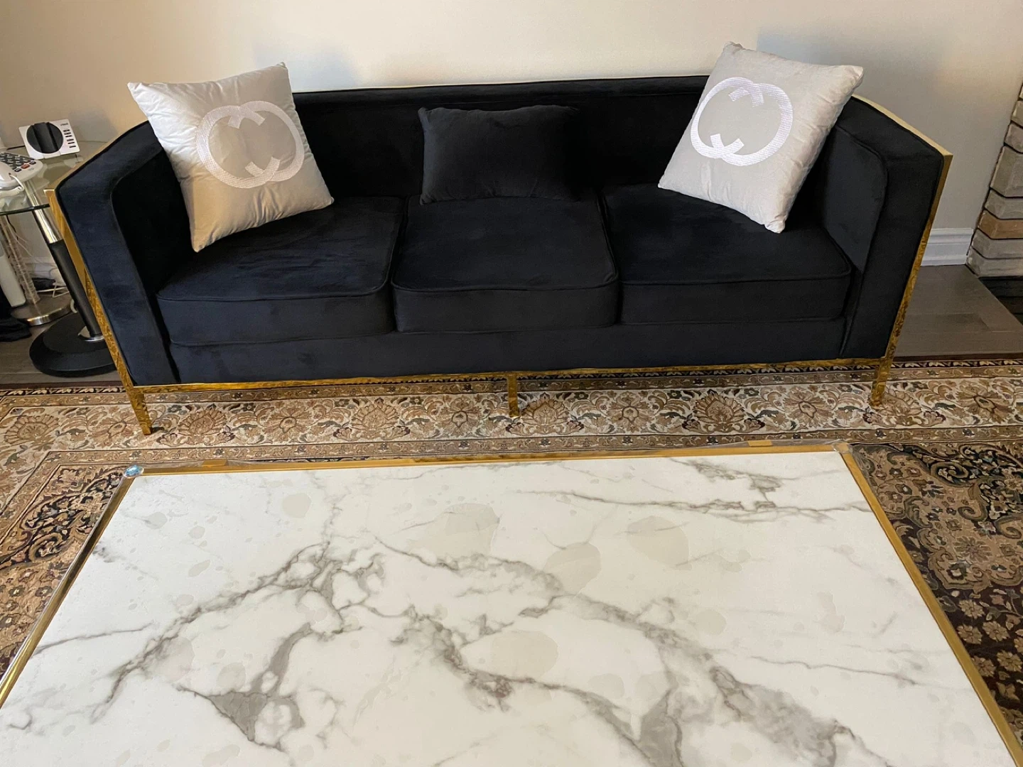 Black Velvet Sofa Set with Gold Trim