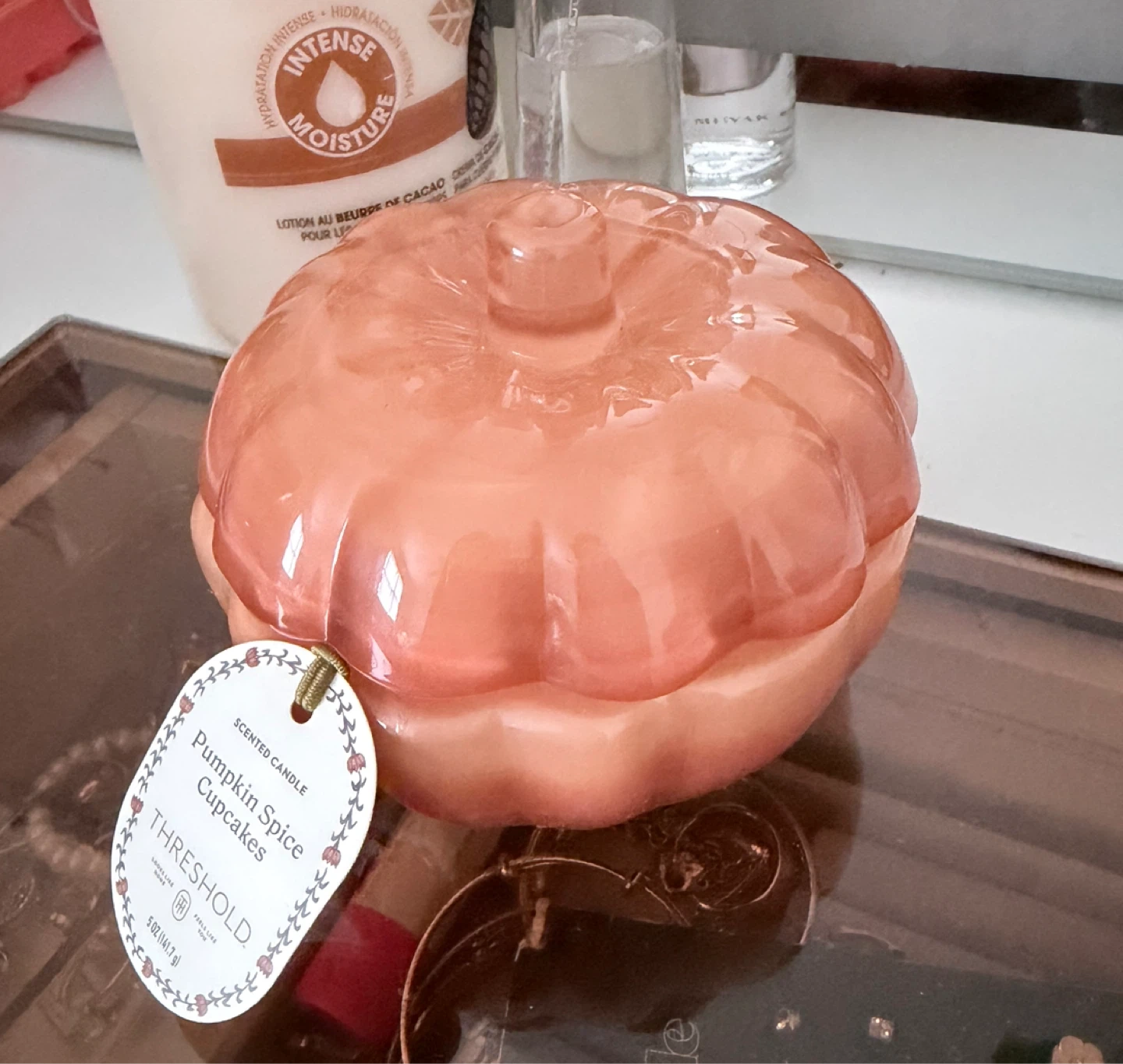 Selling a Threshold scented candle in the Pumpkin Spice Cupcakes scent! It's a cute pumpkin-shaped candle that would be perfect for fall