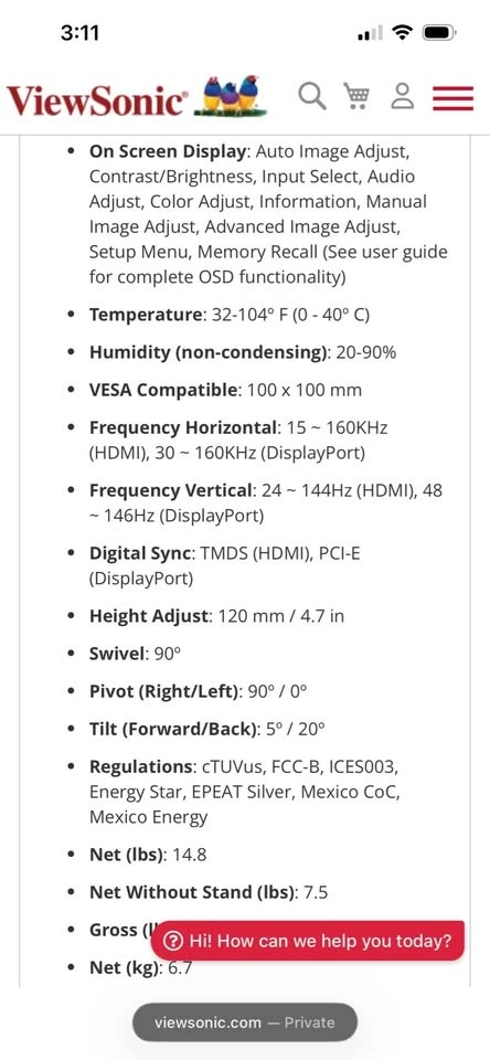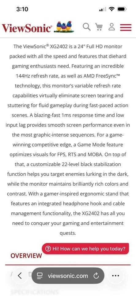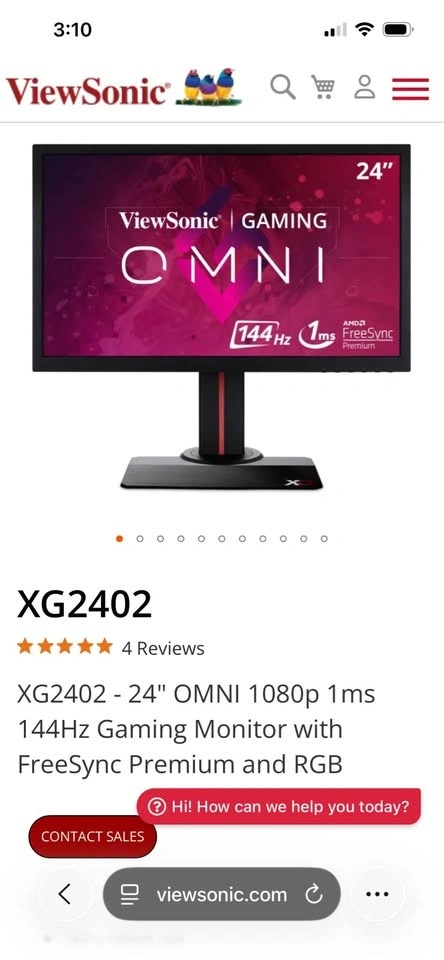 Viewsonic XG2402 24" 1080P Full HD 144Hz Gaming Monitor W/ FreeSync Premium and RGB.