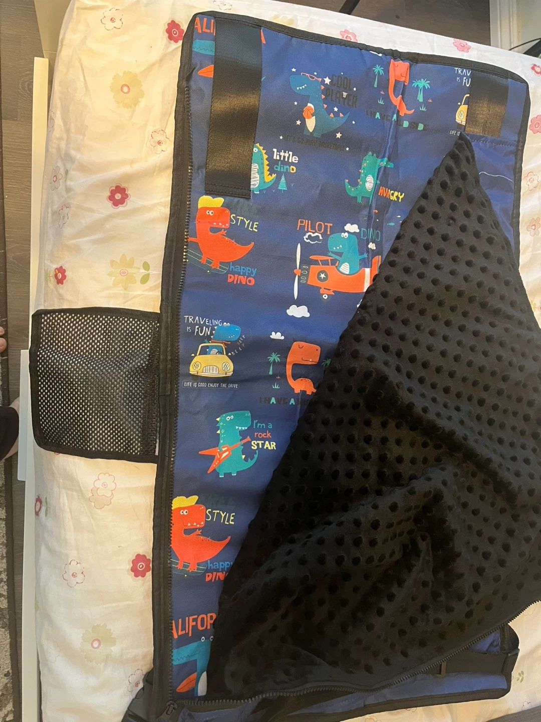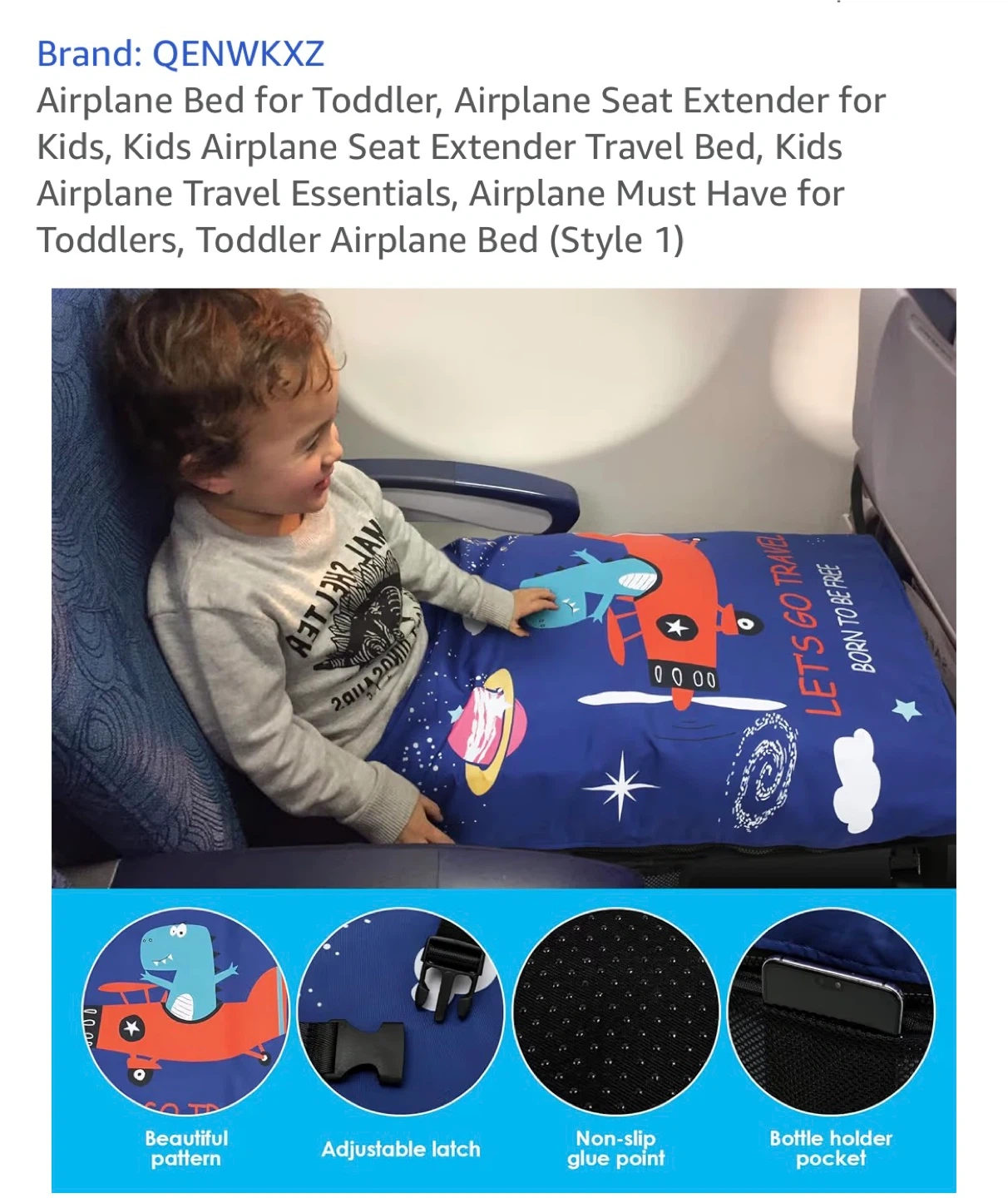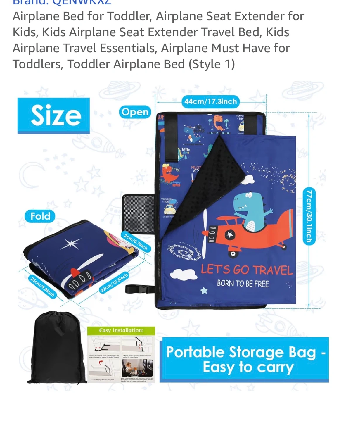This airplane bed for toddlers by QENWKXZ is a great travel essential! It can be used as an airplane seat extender for kids, creating a comfortable travel bed. It features a portable storage bag for easy carrying and easy installation. The bed measures 44cm/17.3inch x 77cm/30.1inch when open and 25cm/9.8inch x 32cm/12.5inch when folded.