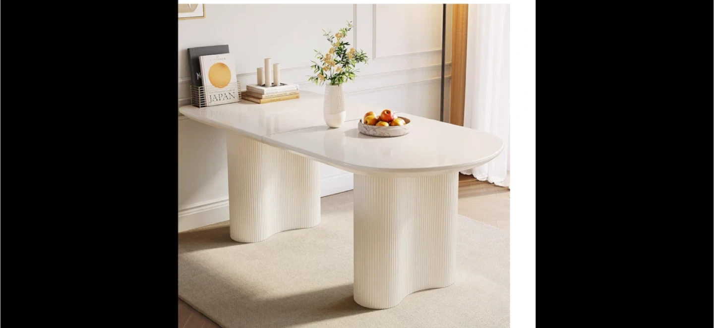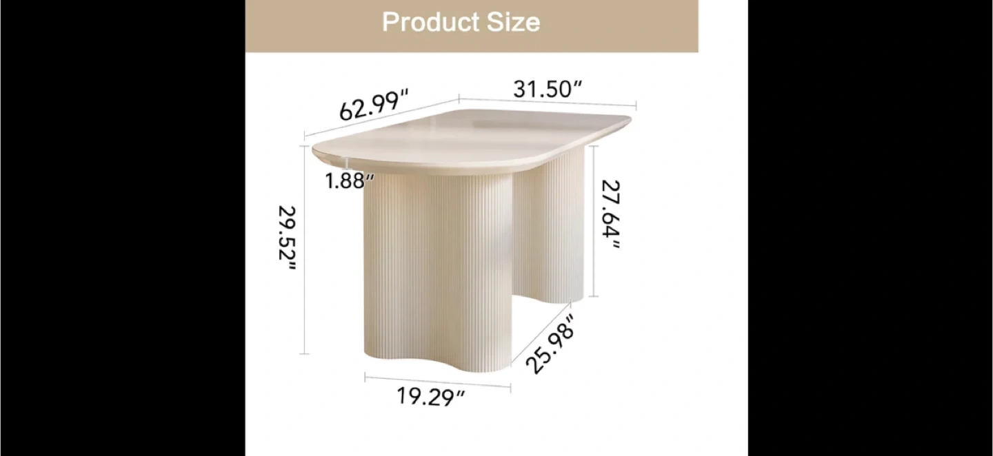 Selling a modern dining table in a cream color! The table is 62.99 inches long, 31.50 inches wide, and 29.52 inches high. It's a beautiful piece that would look great in any dining room or kitchen