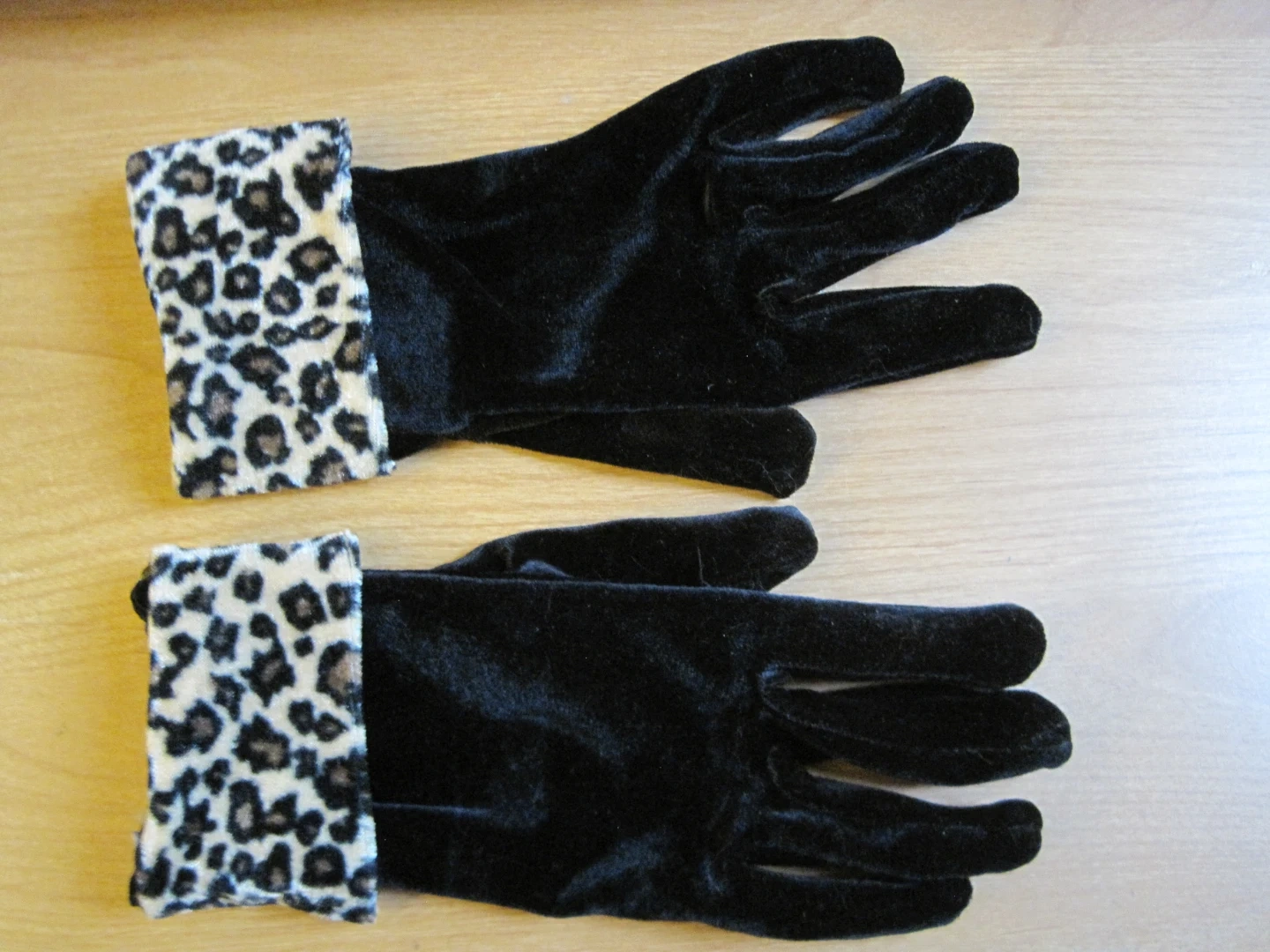 New. Black Velvet Gloves with Leopard Print Cuff. Firm price.