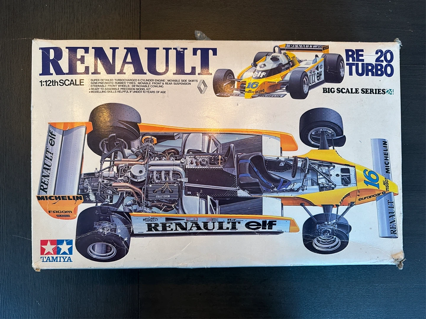 Selling original 1981 release of the Renault RE 20 Turbo 1:12 scale model kit by Tamiya. Parts and stickers are included with manual in excellent condition.