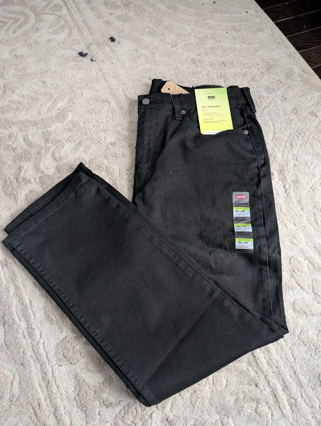 These are brand new Levi's 514 straight fit jeans in size 36x30. They are a classic black colour and have a comfortable stretch. Great for everyday wear