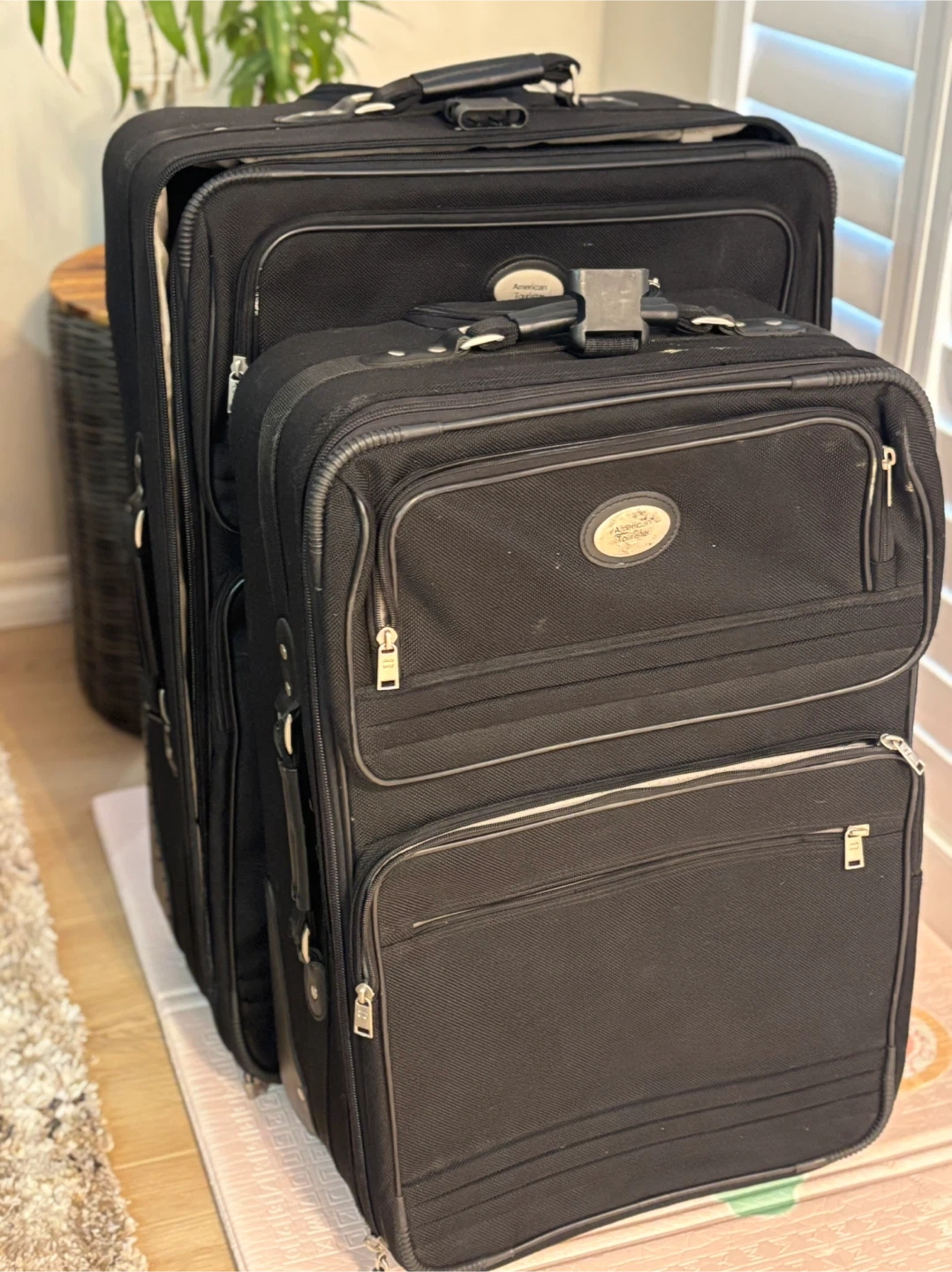 Selling a set of American Tourister luggage in black! They're in good condition and ready for your next adventure