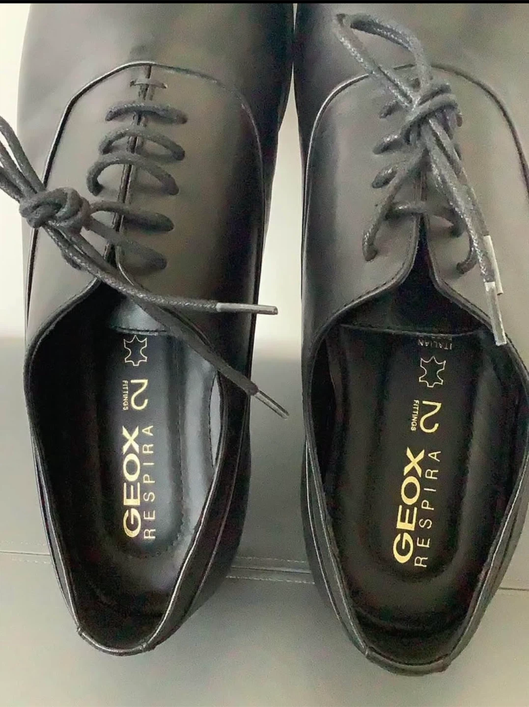 Selling a pair of Geox Respira dress shoes in black leather. These shoes are in great condition and perfect for any formal occasion.