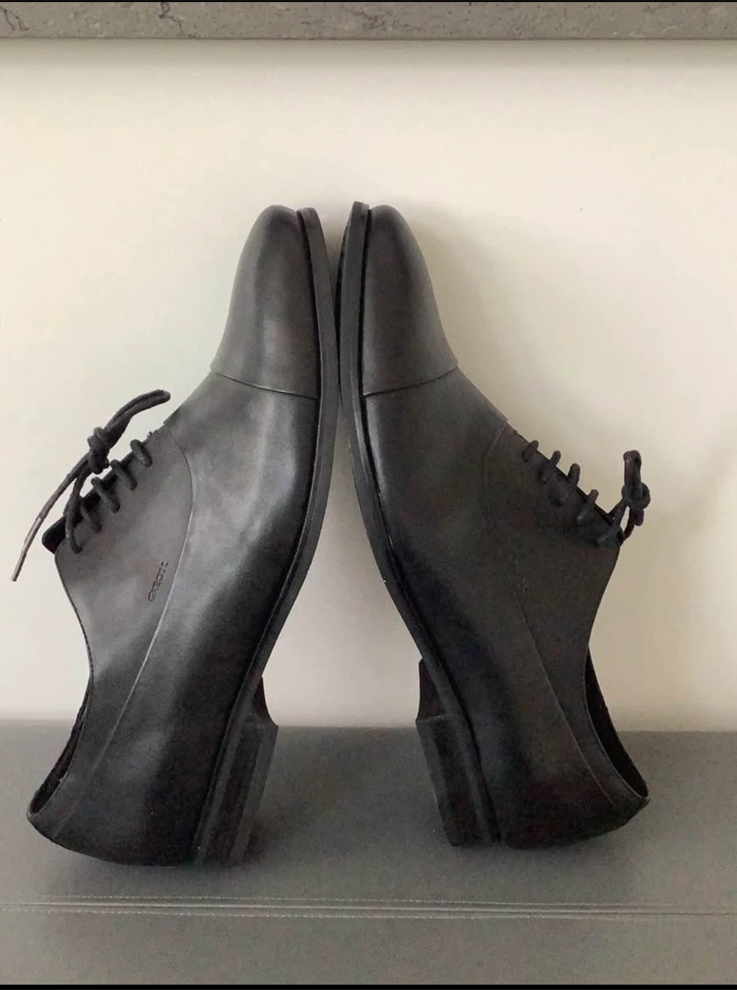 Selling a pair of Geox Respira dress shoes in black leather. These shoes are in great condition and perfect for any formal occasion.