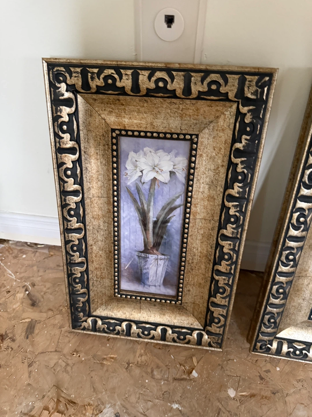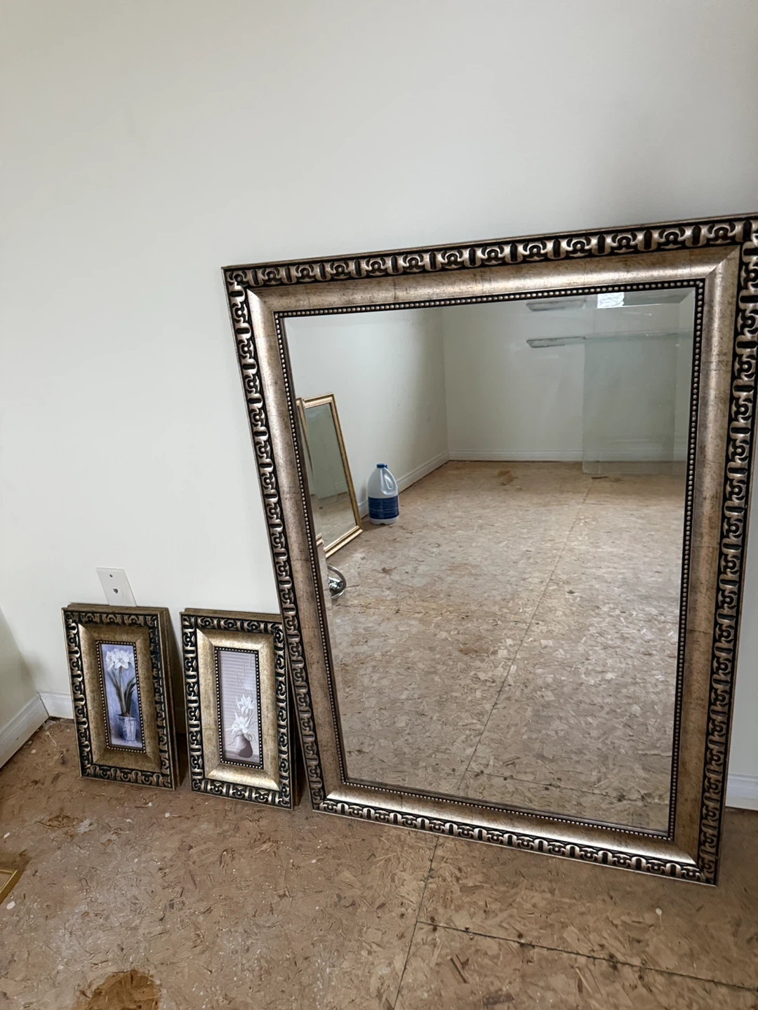 Selling a gold-framed wall mirror and some framed art pieces. They're in good condition and would add a touch of elegance to any room! Please take a look if you are interested