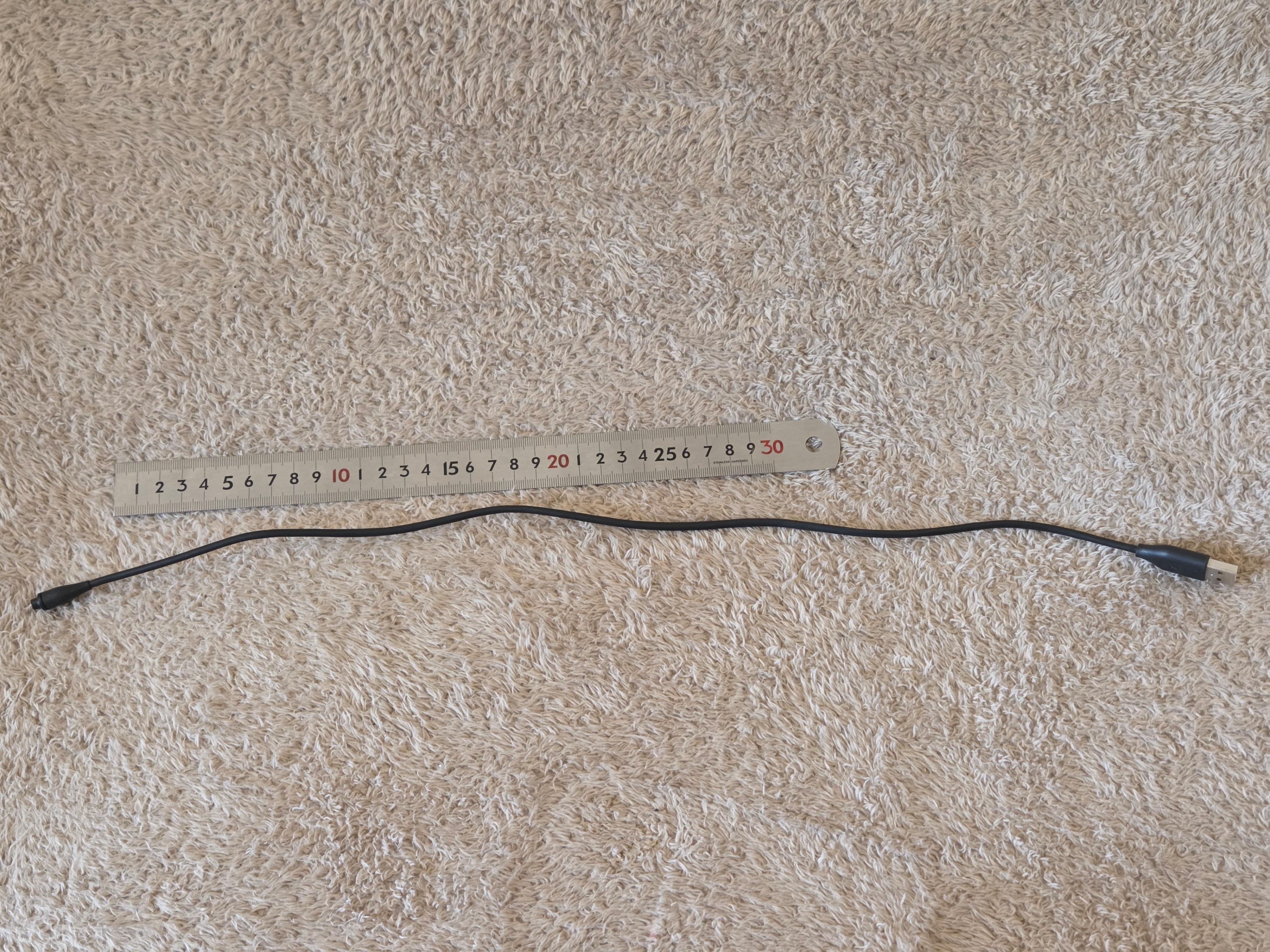 – Measurements: Cable length ~ 50 см (19.7 in); connector head ~ 2.5 см × 1.1 см × 0.9 см (1.0 in × 0.4 in × 0.35 in).