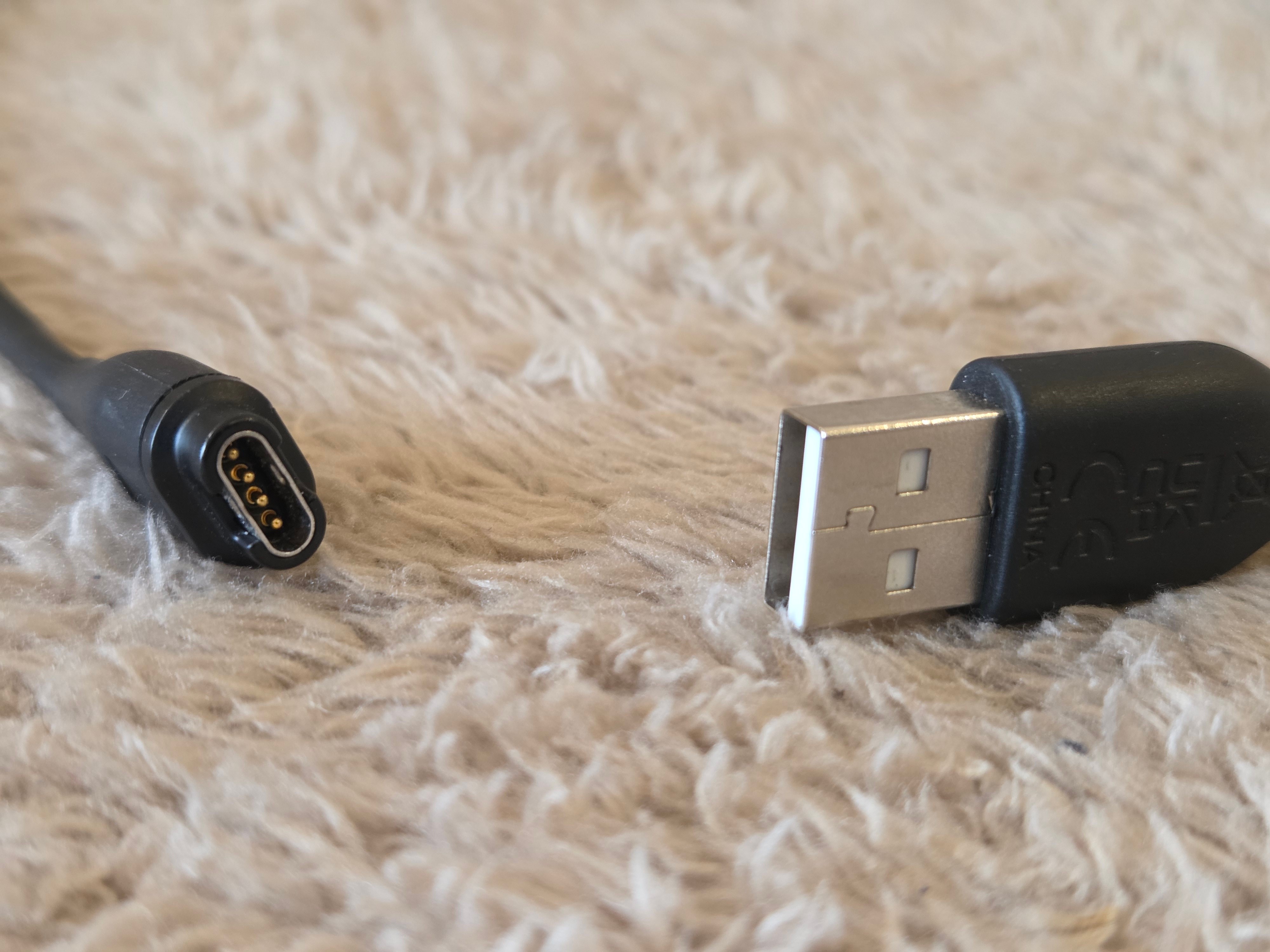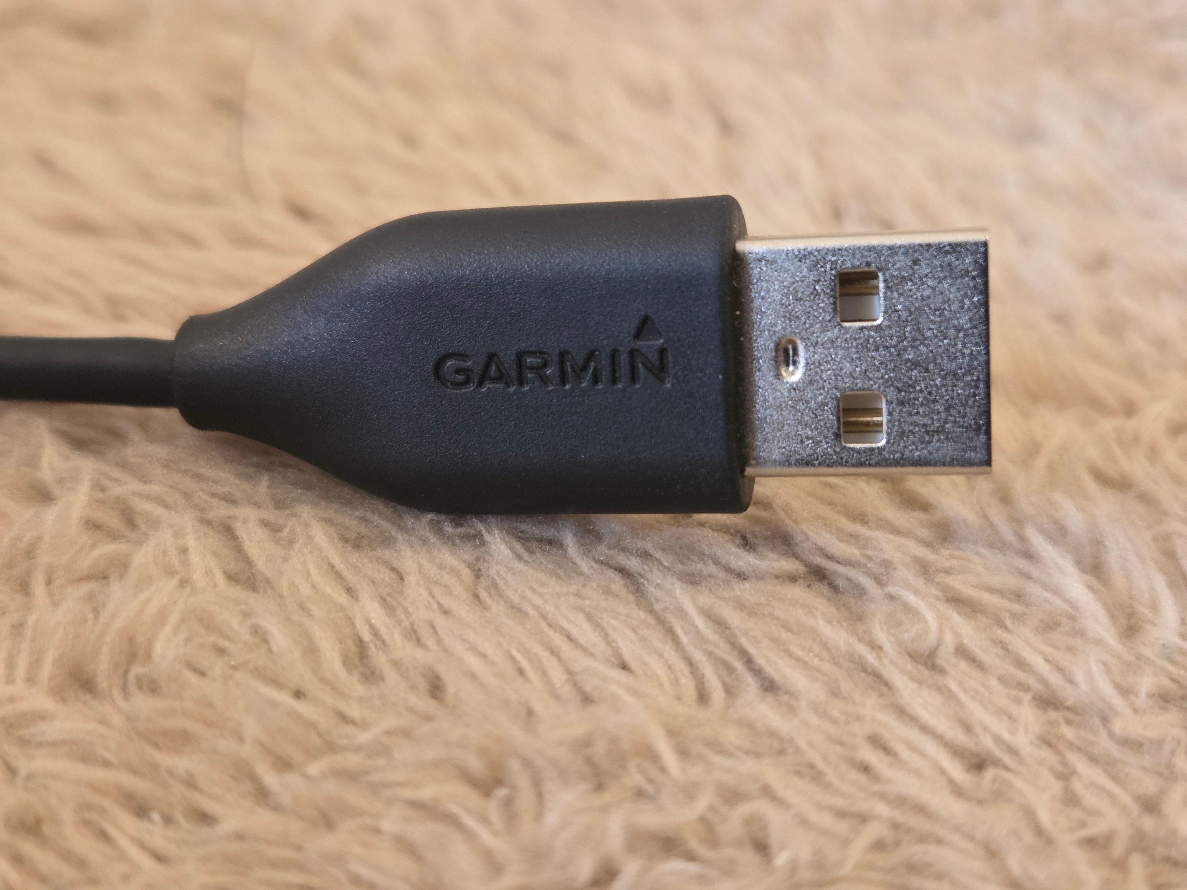– Key specs: USB-A to Garmin 4-pin proprietary connector; charge and data sync; approx. 50 cm cable length; OEM Garmin branding.