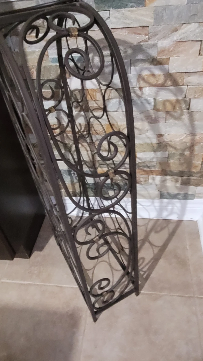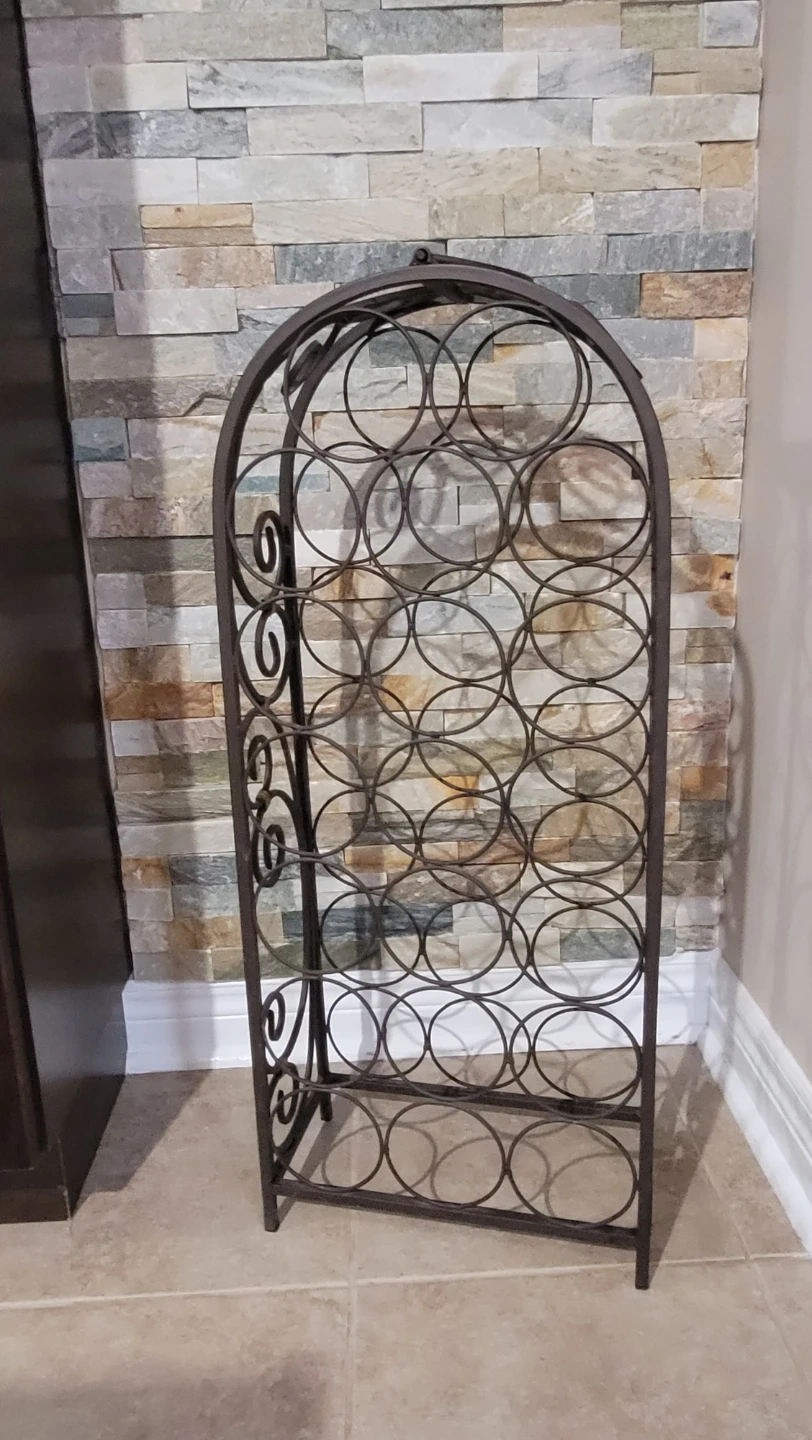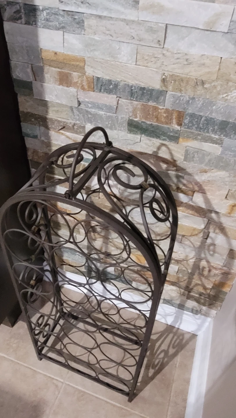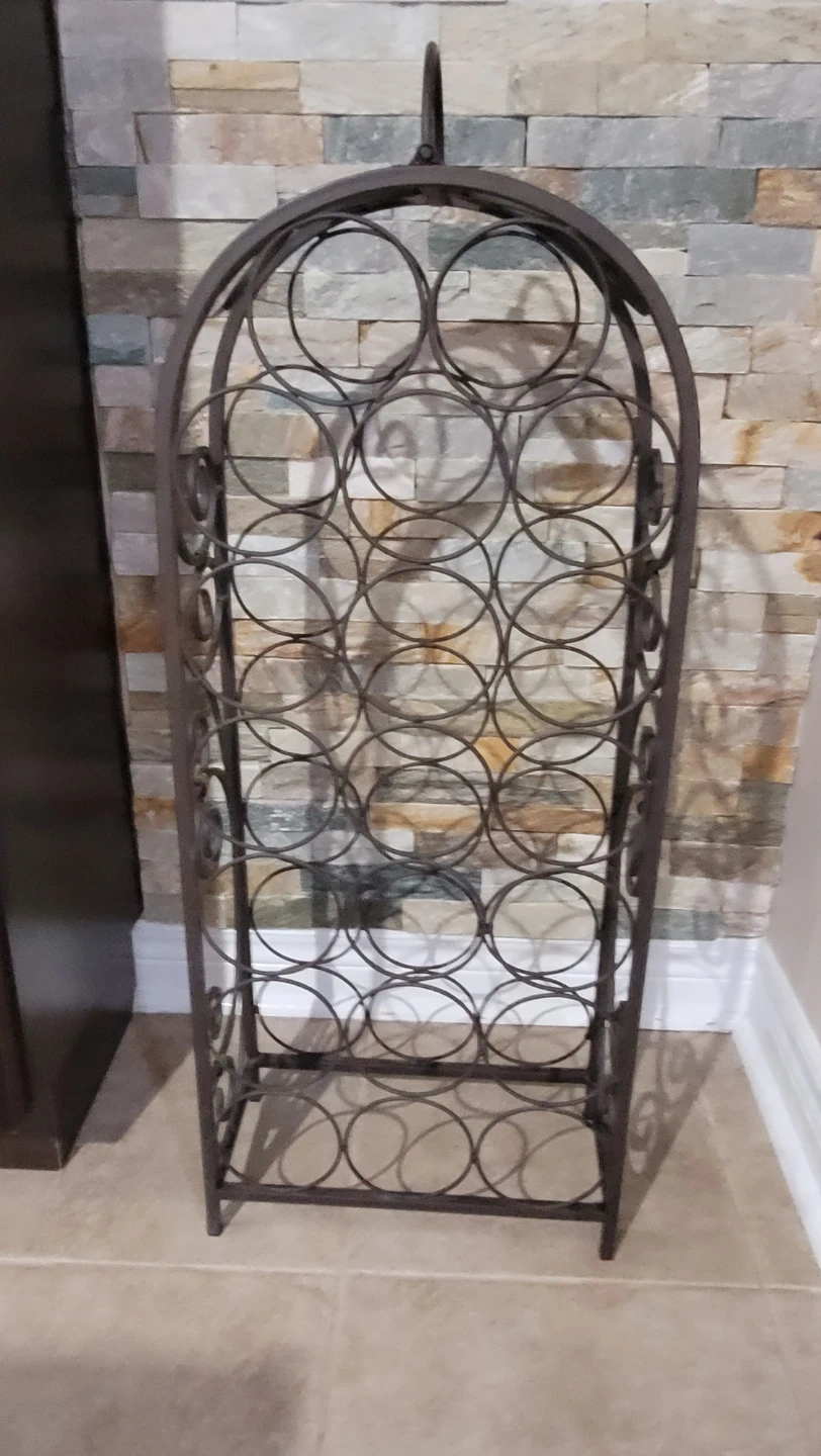 Here's a wrought iron wine rack for sale! It's in excellent condition and ready to hold 20 bottles in 2 feet 6 inches high. Originally purchased from Pier One...