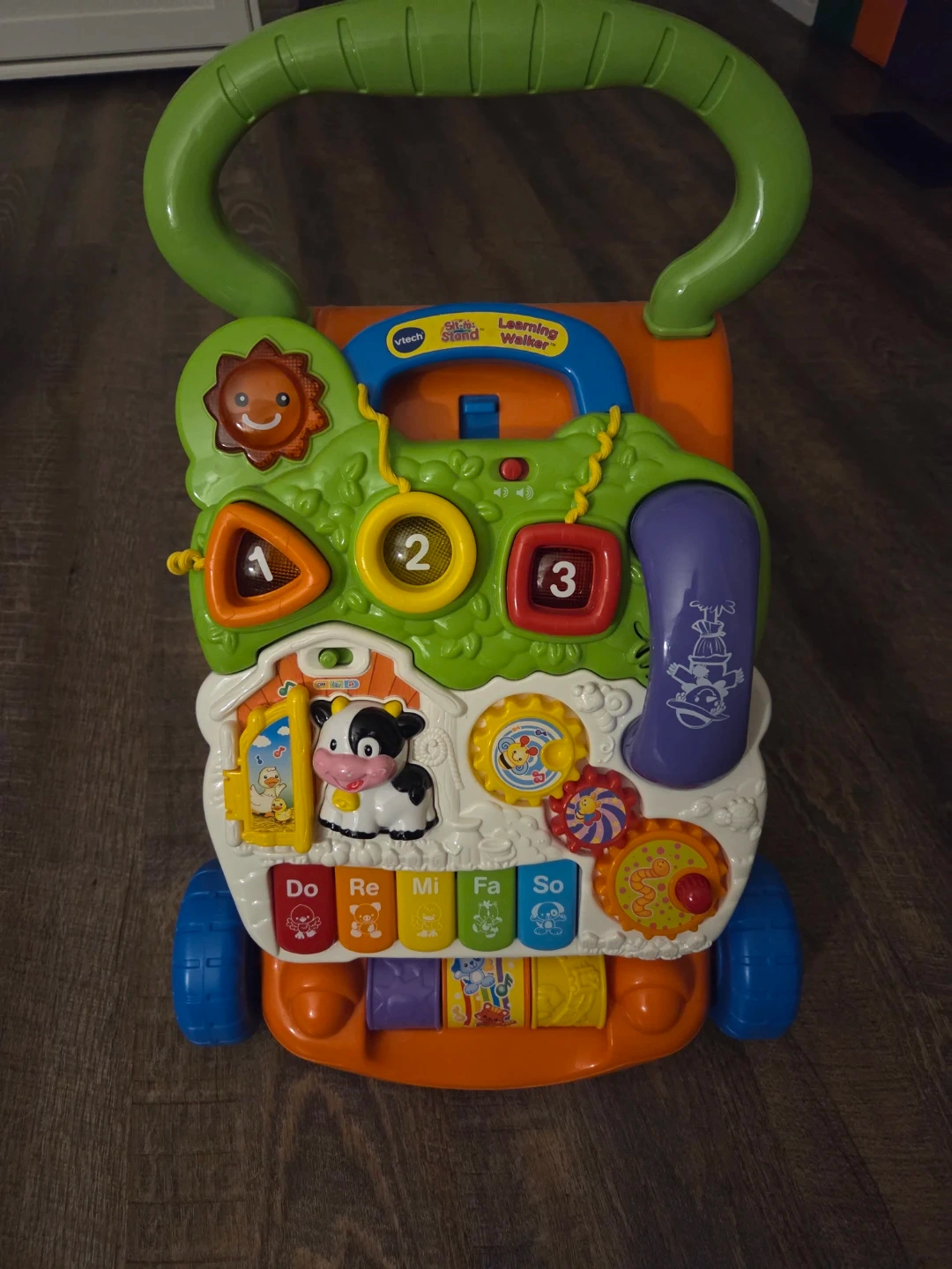 Selling a VTech Sit-to-Stand Learning Walker! It's a fun and interactive toy that helps your little one learn and explore as they grow. This walker is designed to adapt to your child's changing needs, starting as a floor toy and transforming into a walker to encourage those first steps