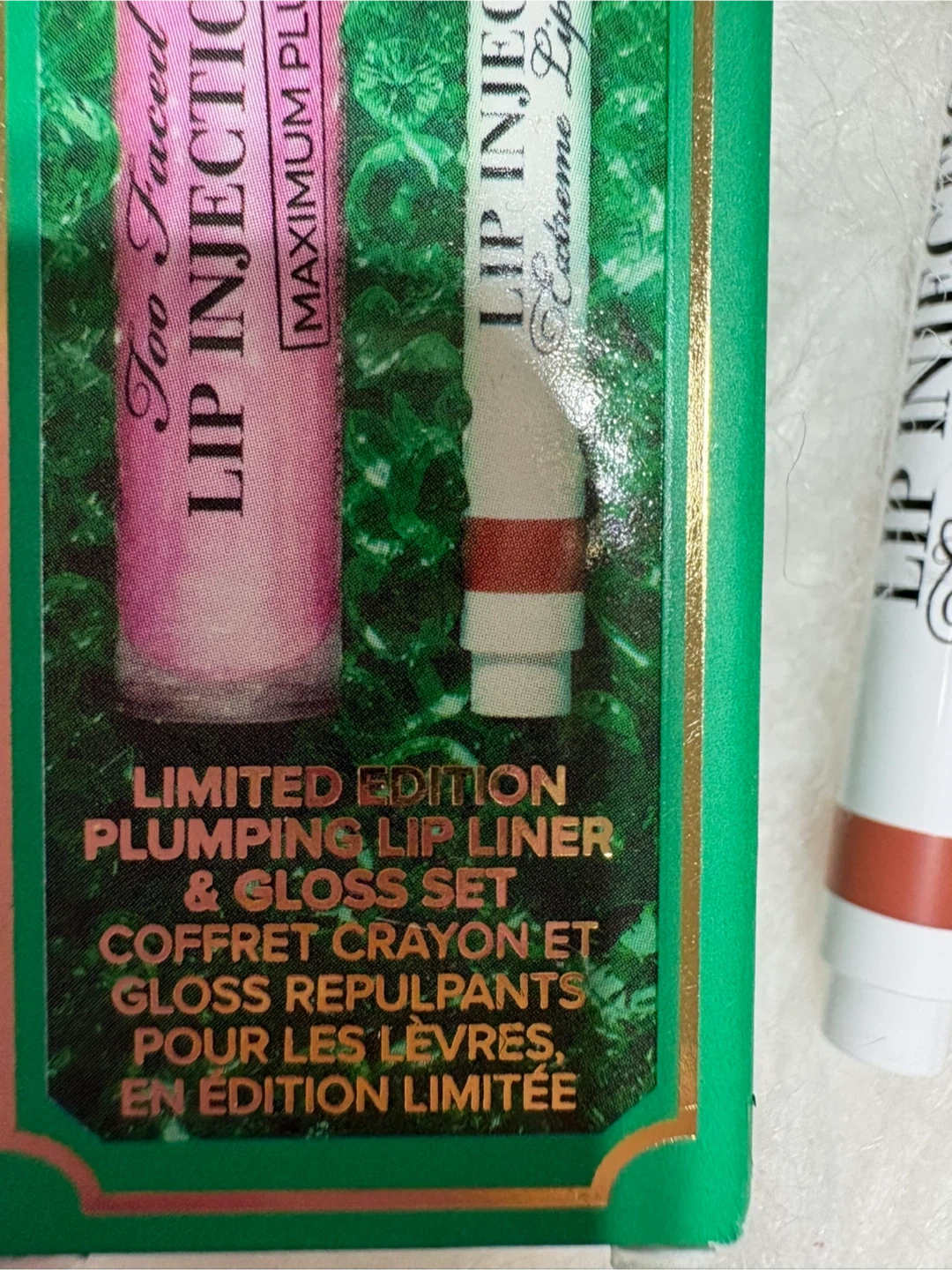 Selling a Too Faced Limited Edition Lip Injection Liner & Plumping Gloss Set! It comes with the box, and includes both the lip liner and the lip gloss