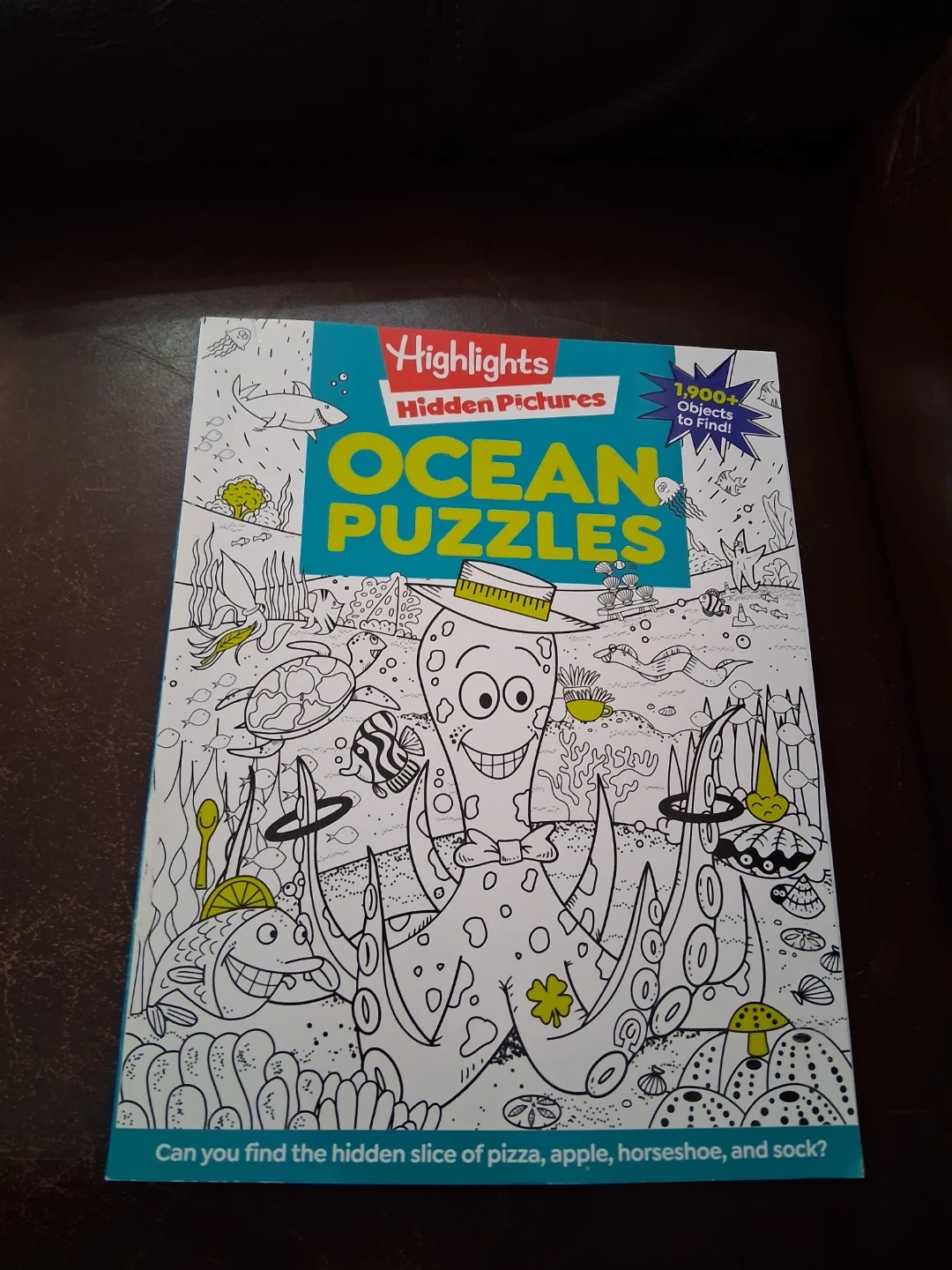 Selling a Highlights Hidden Pictures Ocean Puzzles book! It has over 1,900 objects to find. Can you find the hidden slice of pizza, apple, horseshoe, and sock?