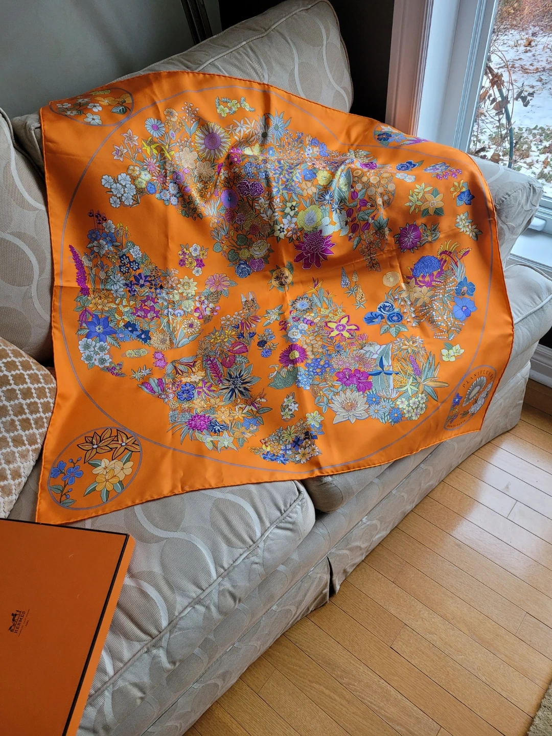 AUTHENTIC Hermès Paris Planifleurs Silk Scarf with Box