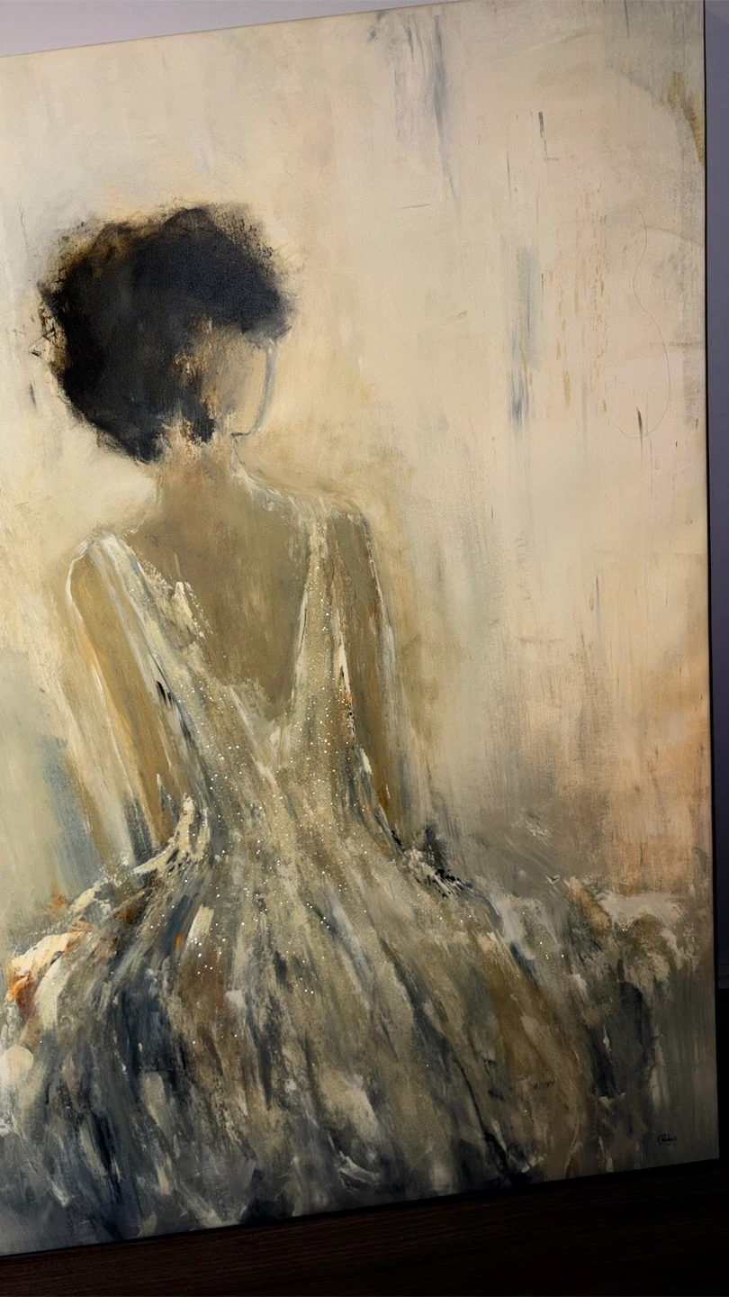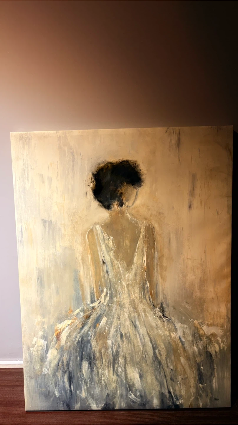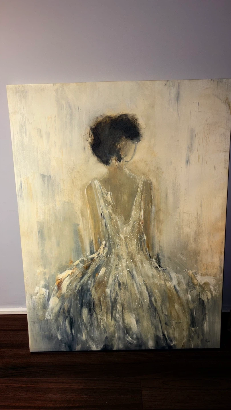 Exquisite Ornate Elegant Lady Oil painting on Canvas. This has beautiful, subtle, grainy shimmer on it. It’s a beautiful art piece! Will make a stunning addition to your living space. Price is firm