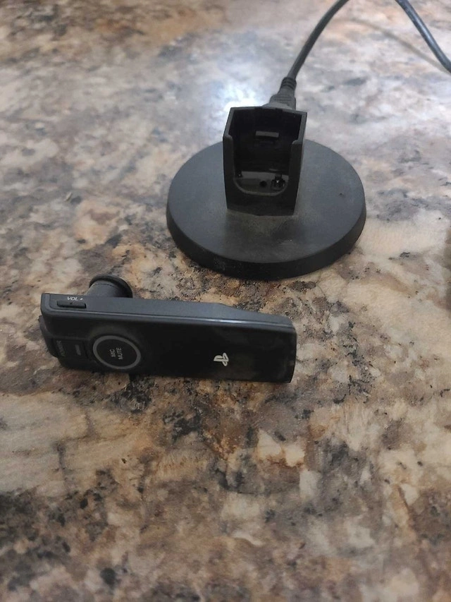 Get ready to level up your gaming audio with this used Playstation Bluetooth Headset! Perfect for clear communication with your teammates or enjoying immersive game sound without disturbing others. This headset is in good, used condition and ready for a new home. Why settle for silence when you can chat and strategize? Grab this headset, and let's get ready to play! And remember, if the ad is up, the headset is available – so no need to wonder.