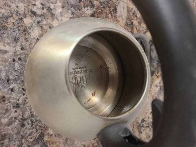 Boil water in style with this KitchenAid kettle. It has some wear from regular use but is still fully functional. It's ready to help you make your favourite hot beverages! If the ad is up, it's still available!
