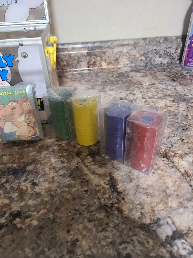 I'm selling a pre-owned Family Guy Freakin' Party Pack! This party pack does not comes with DVDs, but still contains playing cards, dice, poker chips, ping pong balls and coasters! It's a great way to bring some laughs and entertainment to your next get-together. Features: -Playing Cards -Dice -Poker Chips -Ping Pong Balls