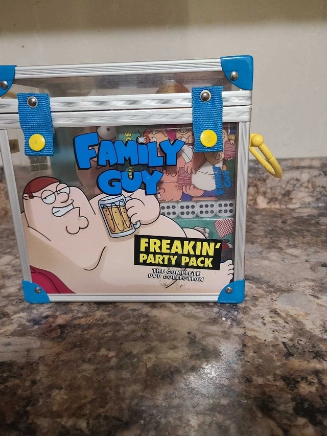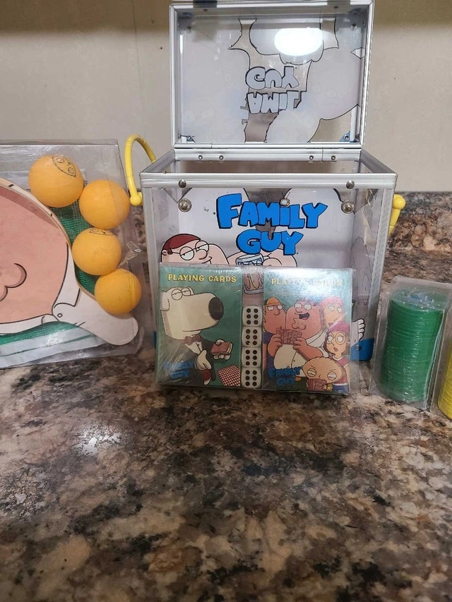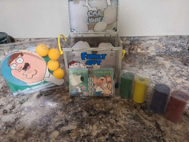 I'm selling a pre-owned Family Guy Freakin' Party Pack! This party pack does not comes with DVDs, but still contains playing cards, dice, poker chips, ping pong balls and coasters! It's a great way to bring some laughs and entertainment to your next get-together. Features: -Playing Cards -Dice -Poker Chips -Ping Pong Balls