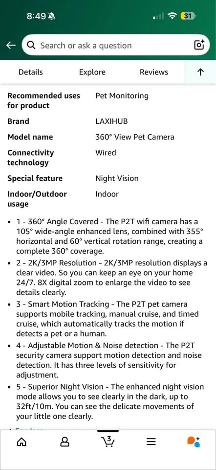 2 LAXIHUB 360° Pet Camera – 2K/3MP – Night Vision