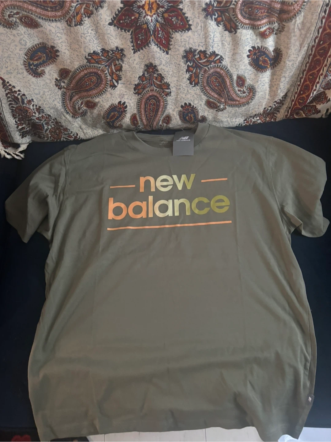 New Balance T-shirt in olive green with the brand logo on the front! It's in great condition and ready for a new home