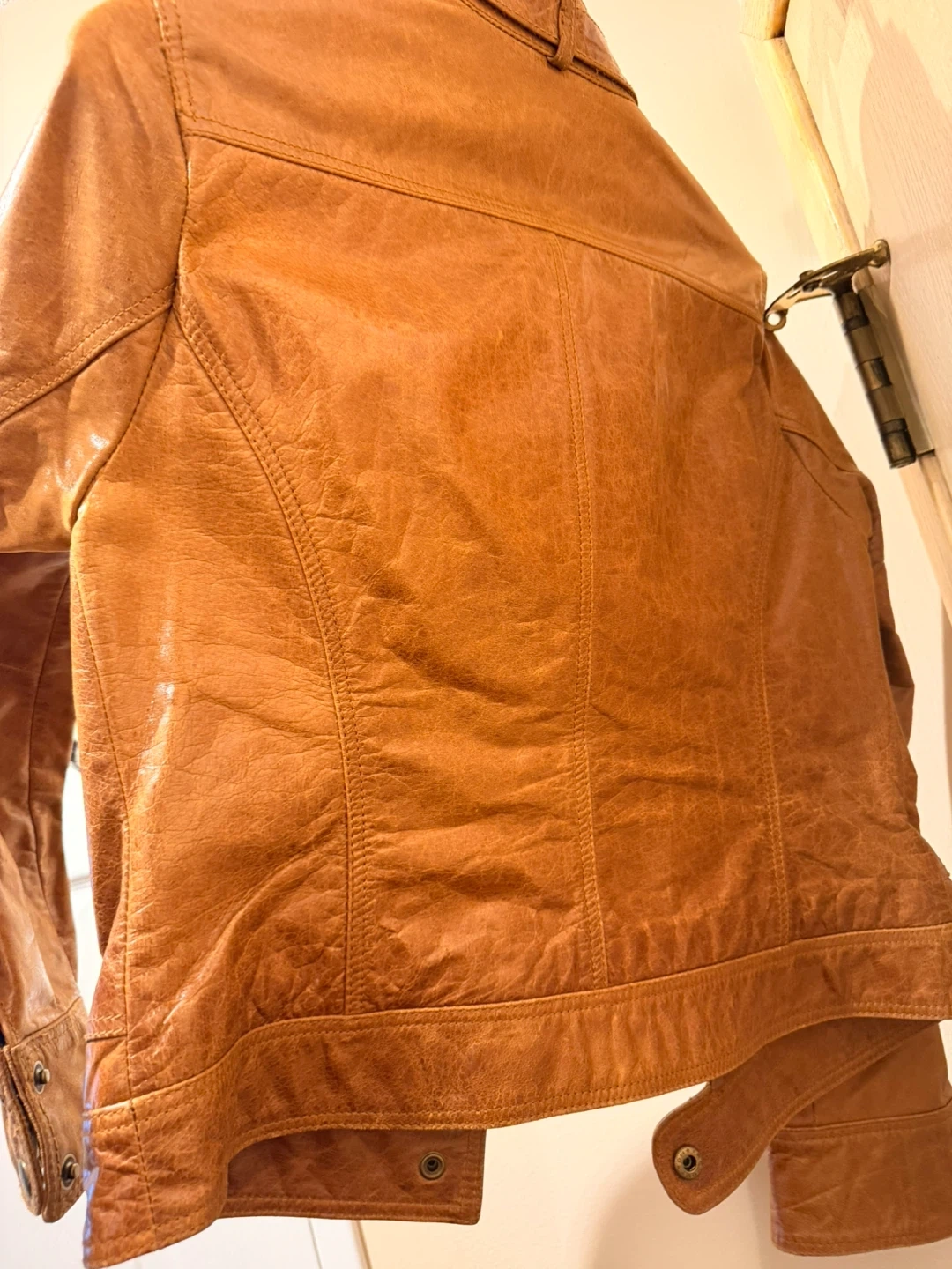 Selling a stylish MOOD by DERIMOD leather jacket in a lovely tan colour. It's a size medium and in great condition. Perfect for adding a bit of edge to any outfit!