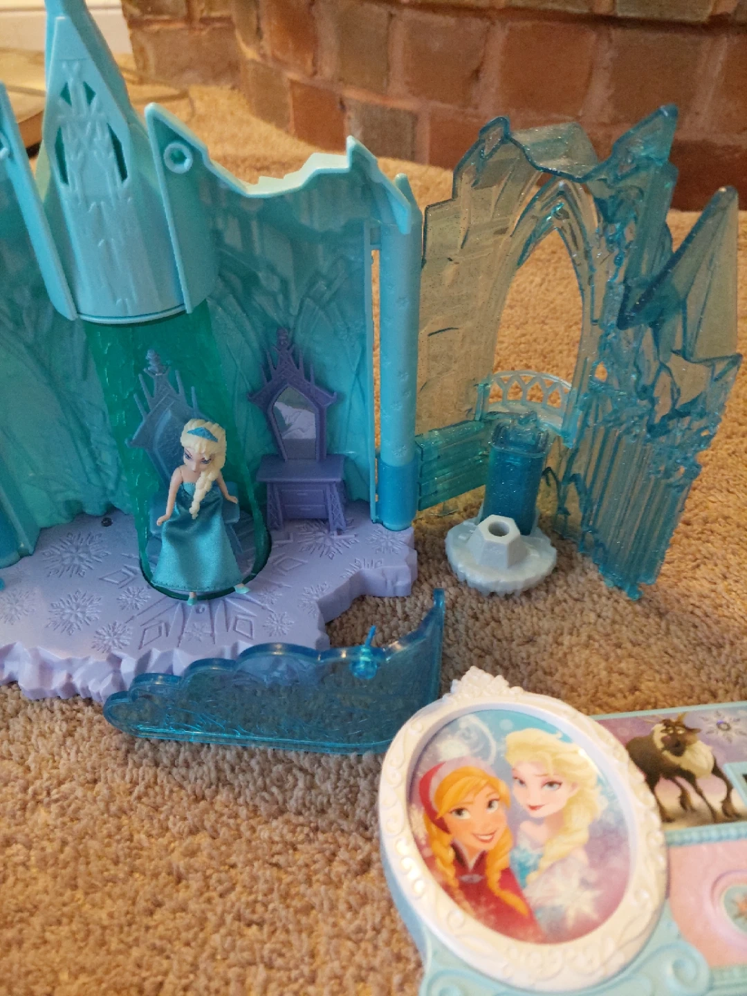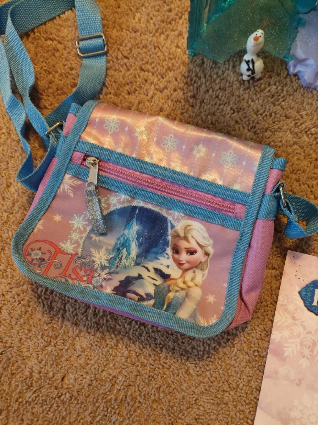 Selling a Frozen-themed lot! Includes a castle playset, a cute little bag, an alarm clock, and a poster featuring Anna and Elsa. Perfect for any Frozen fan!