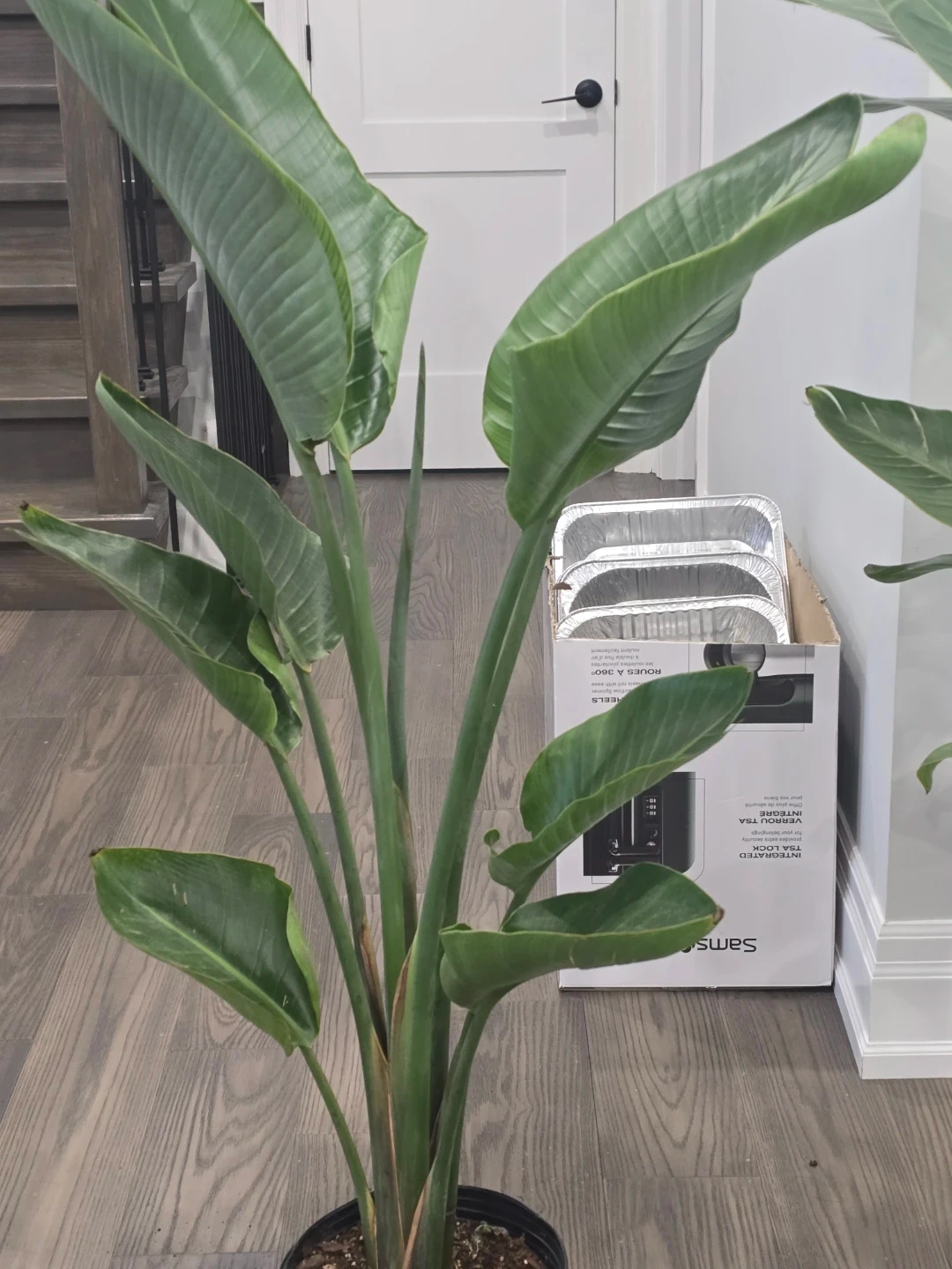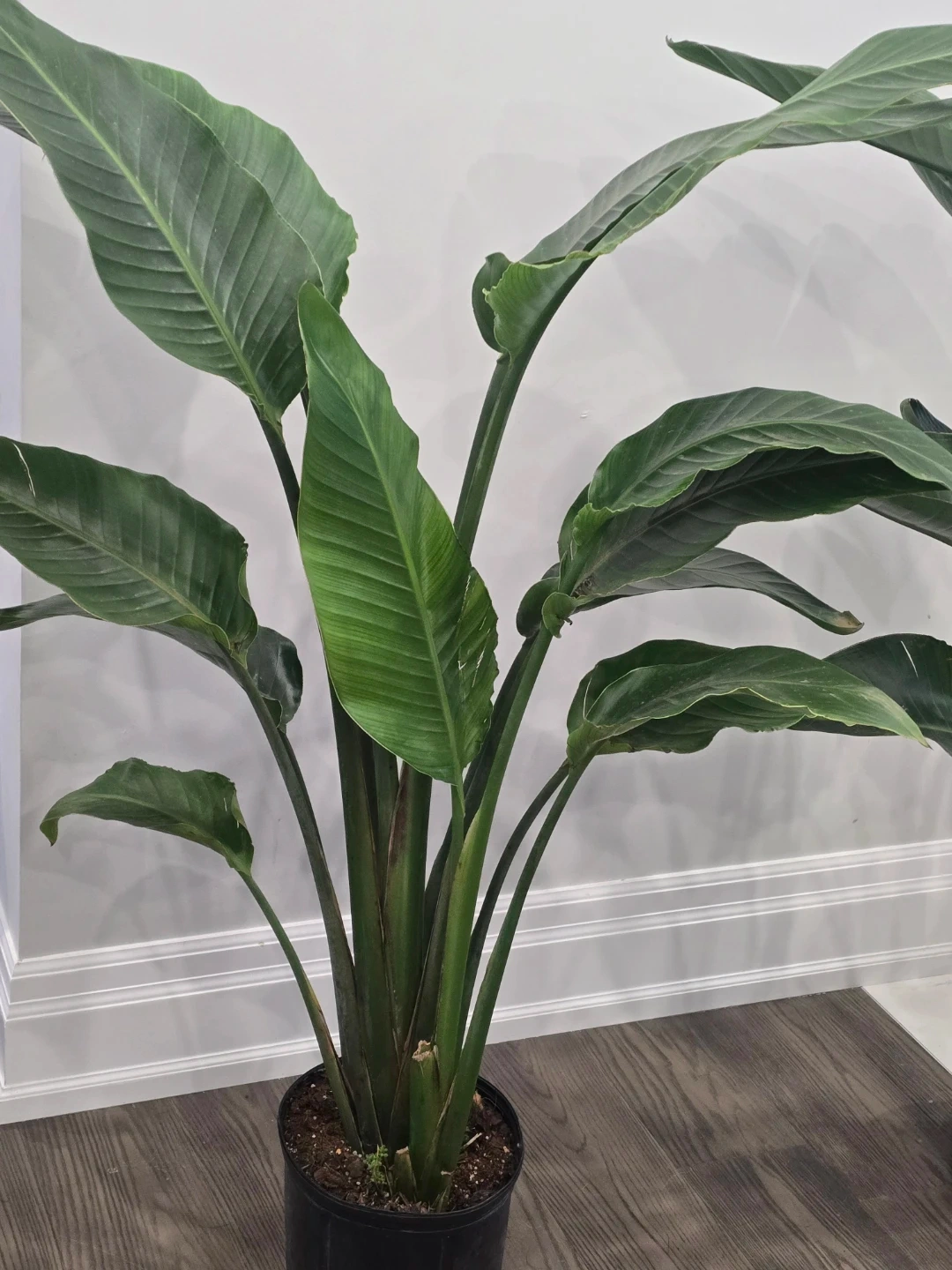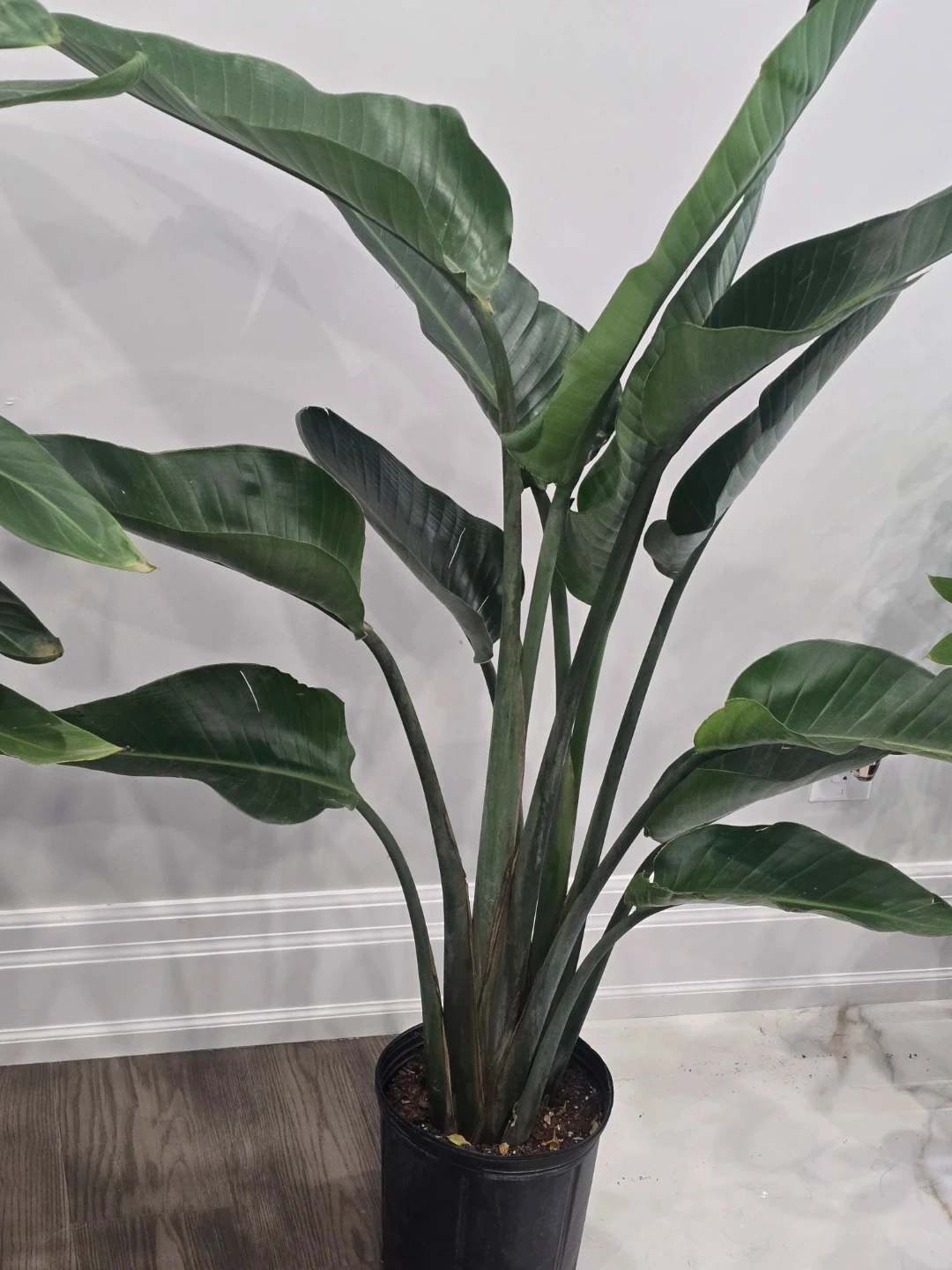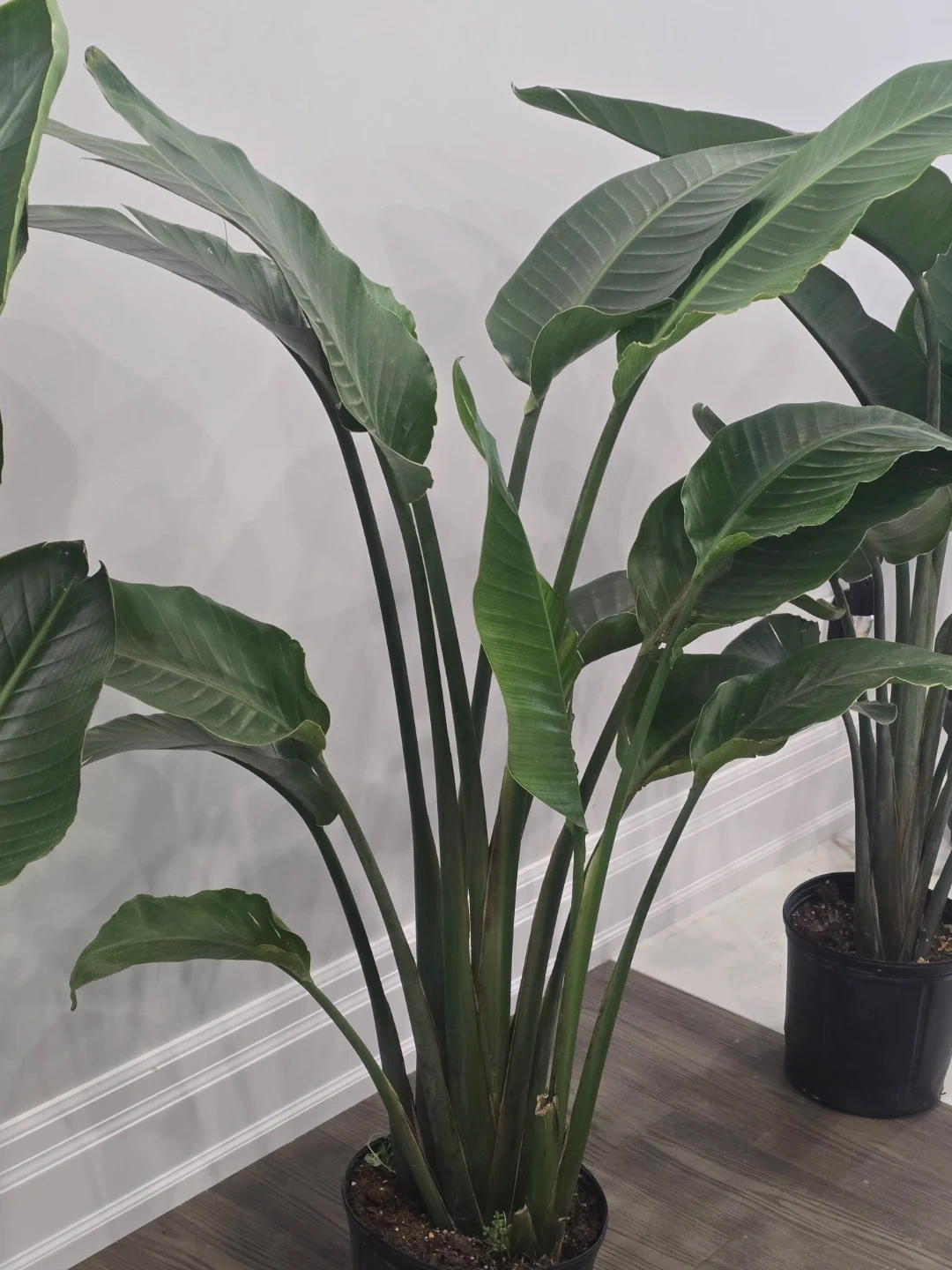 Selling a healthy Bird of Paradise plant in a black pot. It's a beautiful plant that will add a tropical feel to your home!
