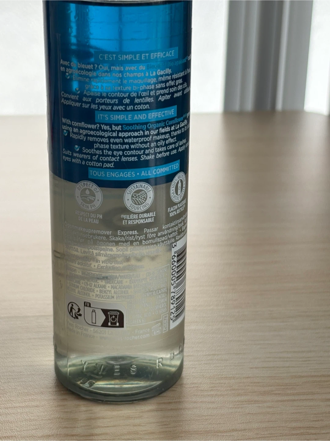 200ml Yves Rocher Pur Bleuet The Express Eye Makeup Remover with Organic Cornflower.