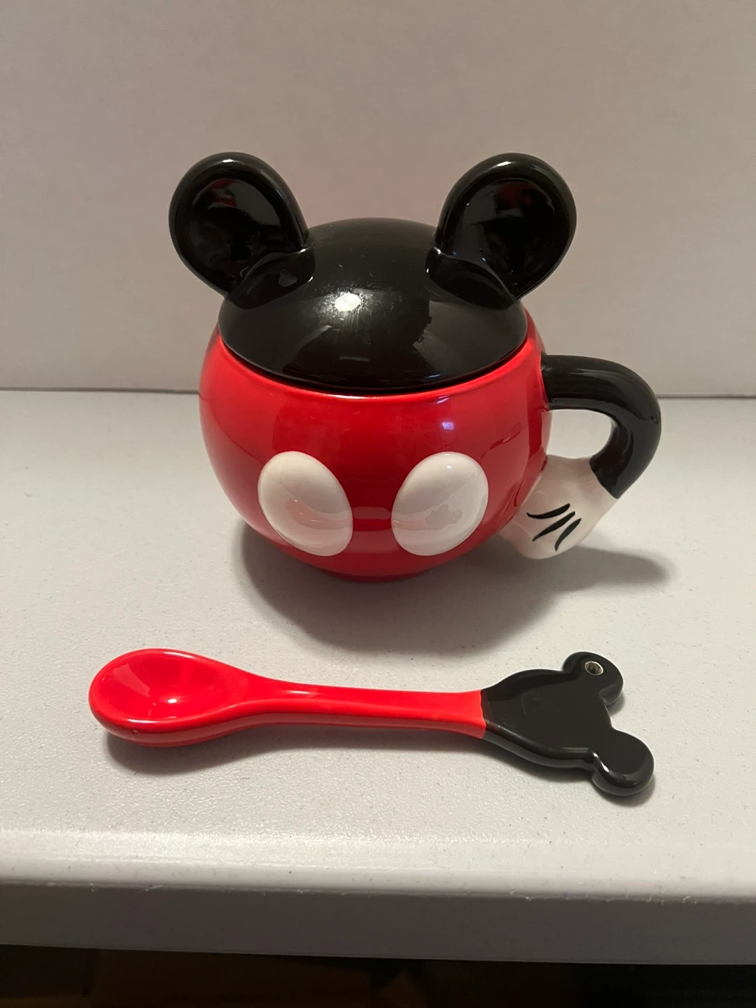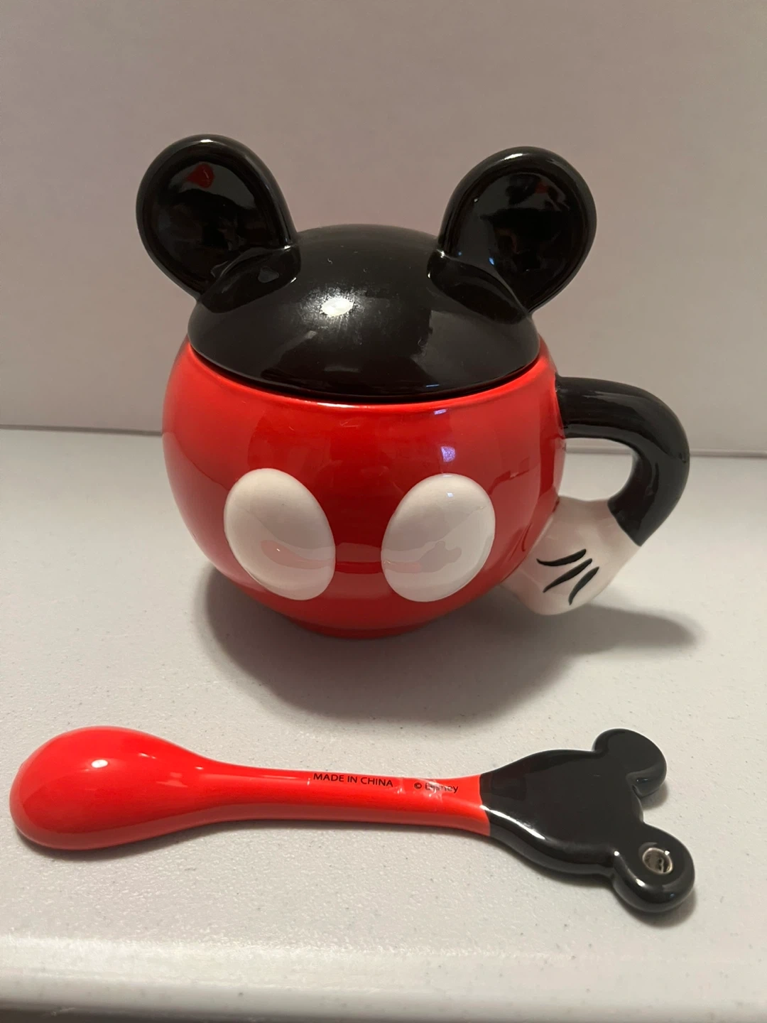 Mickey Mouse Sugar Bowl with Lid and Spoon